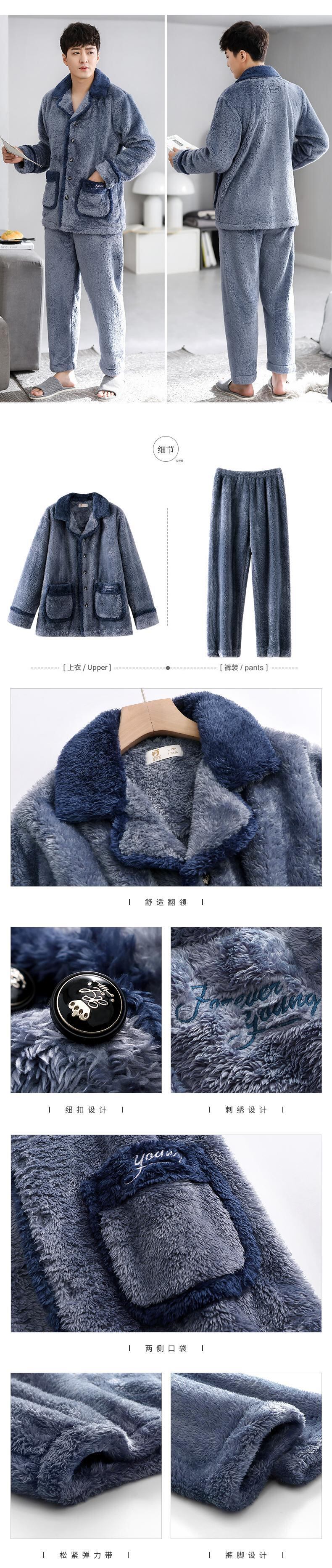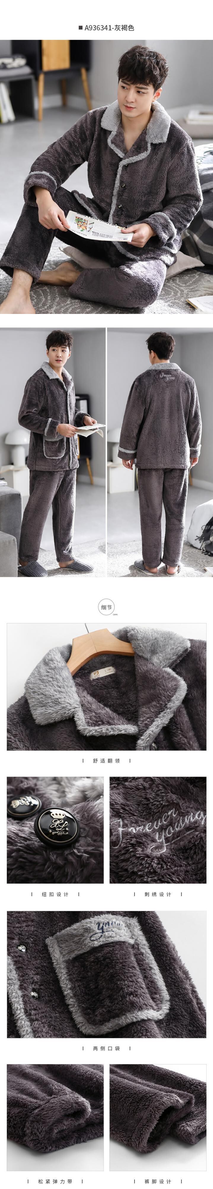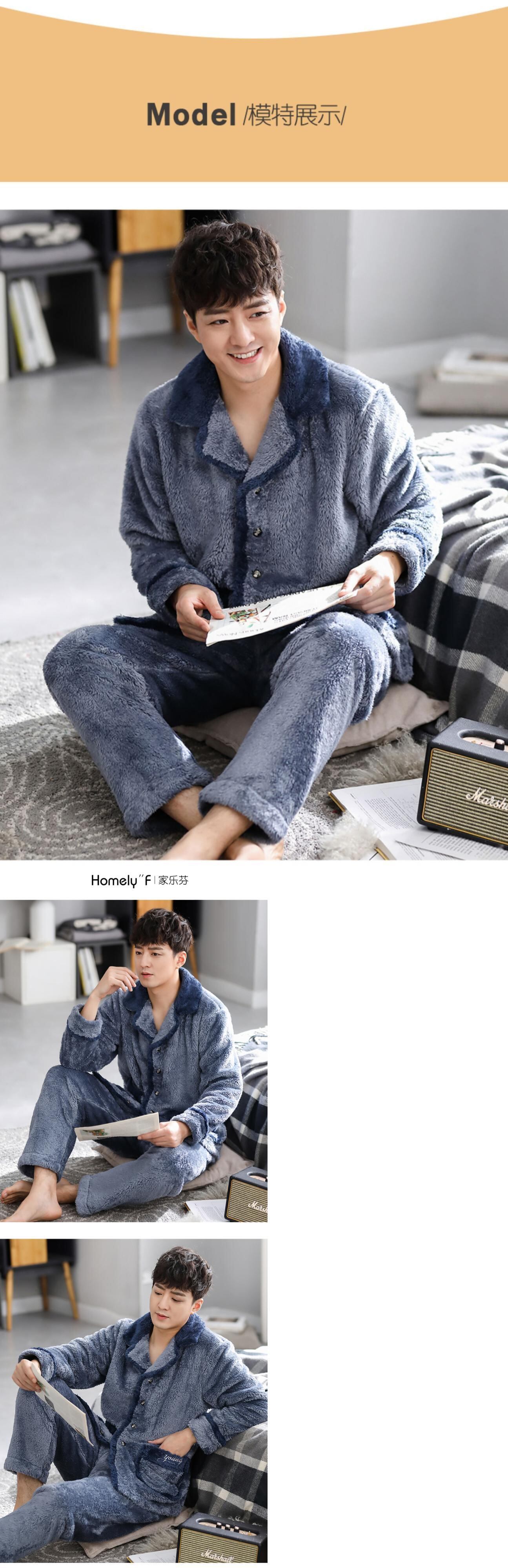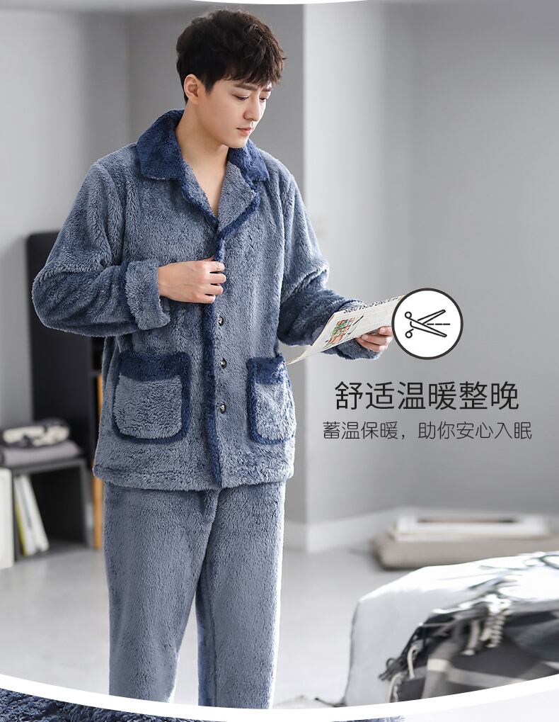 カルフールパジャマメンズ秋冬モデル冬と冬の厚みのあるモデルに加えて、ベルベットの暖かいフランネルコーラルベルベットのホームサービス jial39534526555