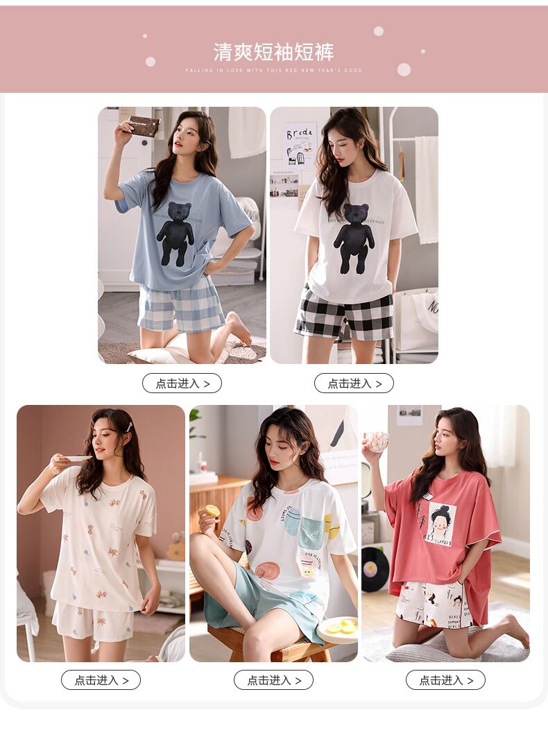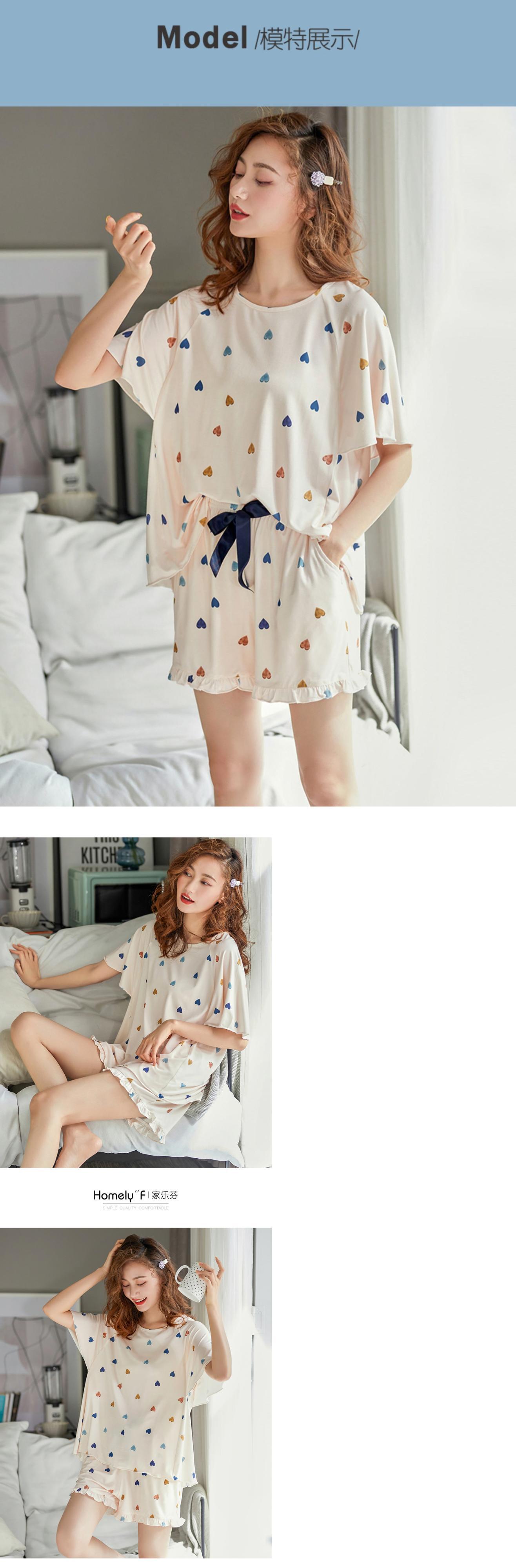 パジャマレディース夏モーダルコットンシルク半袖ホームサービス夏薄氷シルクかわいいese甘いスーツ jial67315322574