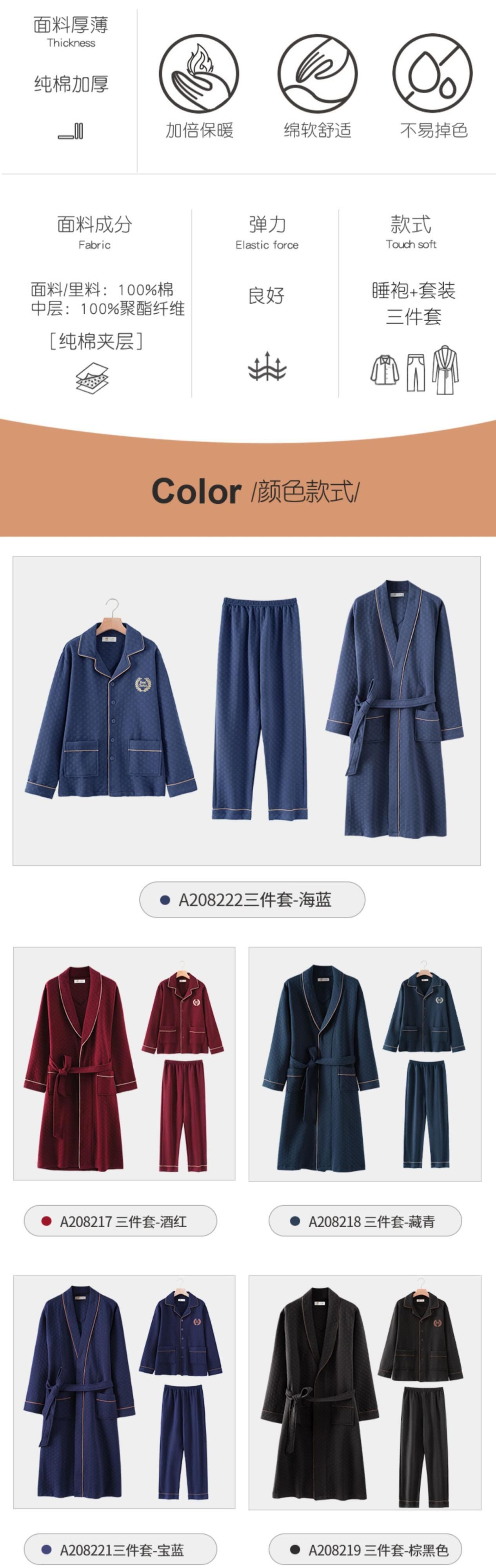 パジャマメンズ春秋モデル秋厚ピュアコットン長袖コットンミディアム厚エアコットン中間層ナイトガウンスリーピーススーツ jial22346793547