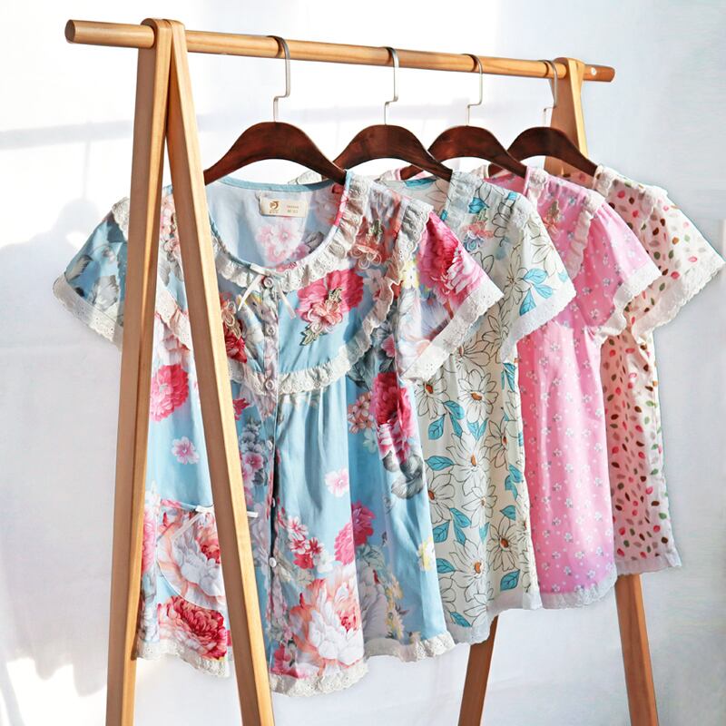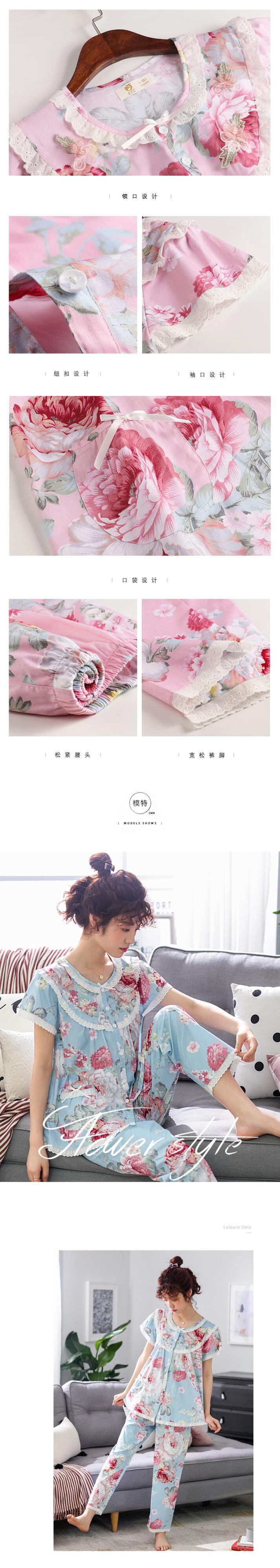 ウーブンコットンパジャマレディースサマーコットン半袖パンツホームサービスサマーシンコットンマザーカーディガンスーツ jial46933334317