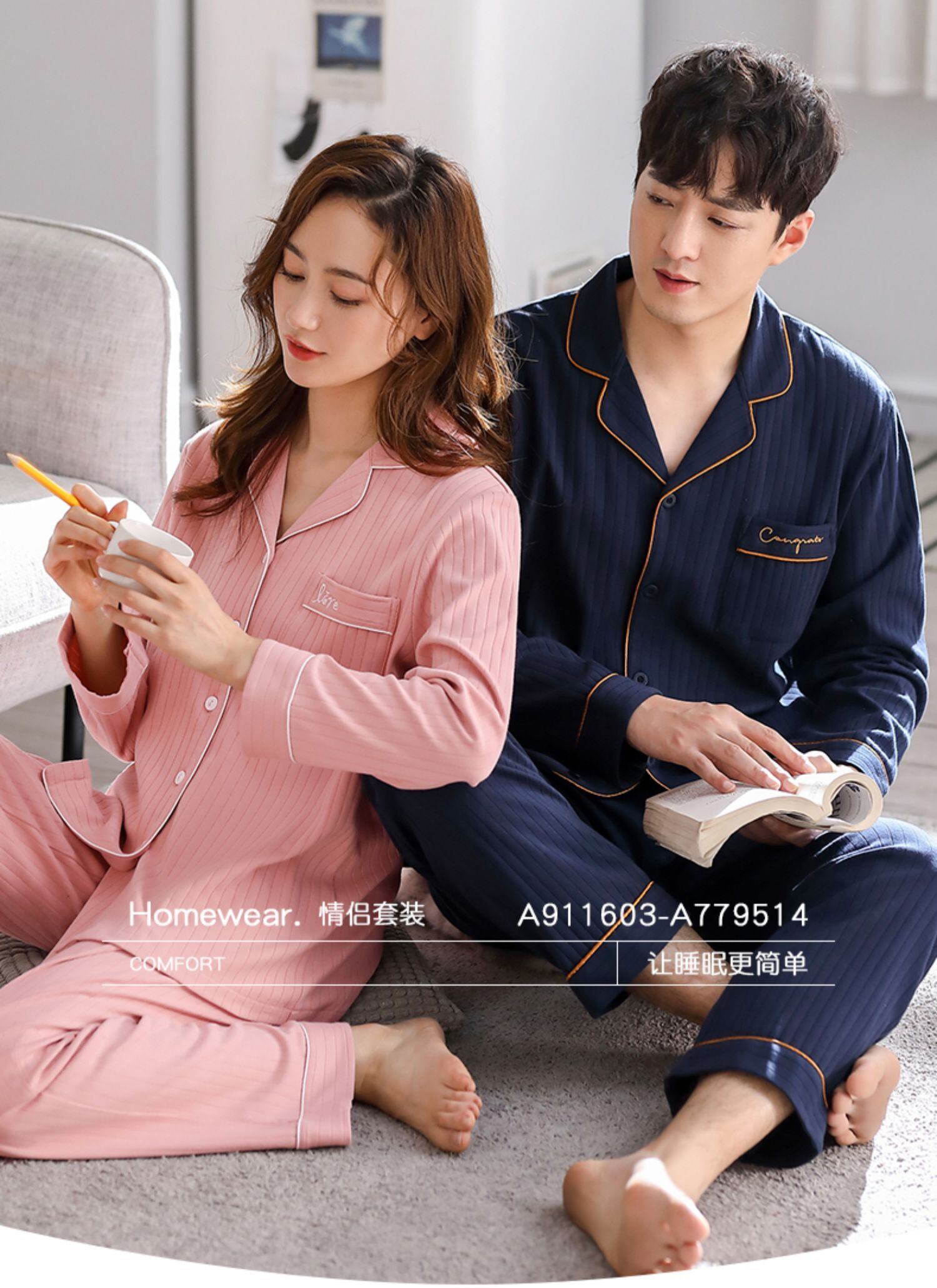 カップルパジャマメンズメンズ春秋秋コットン長袖ホームウェアレディースコットン秋冬冬スーツ jial69216248751