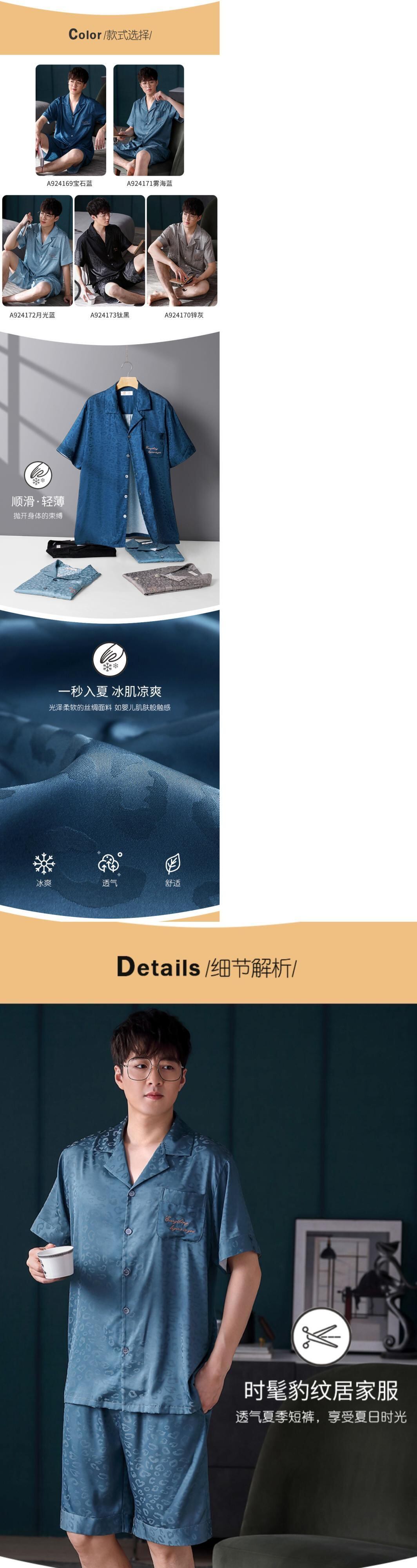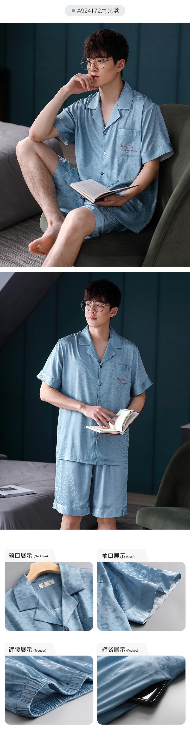 パジャマメンズサマーアイスシルク半袖ショーツホームサービスメンズハイエンドシミュレーションシルクサマー薄スーツ jial1642489225