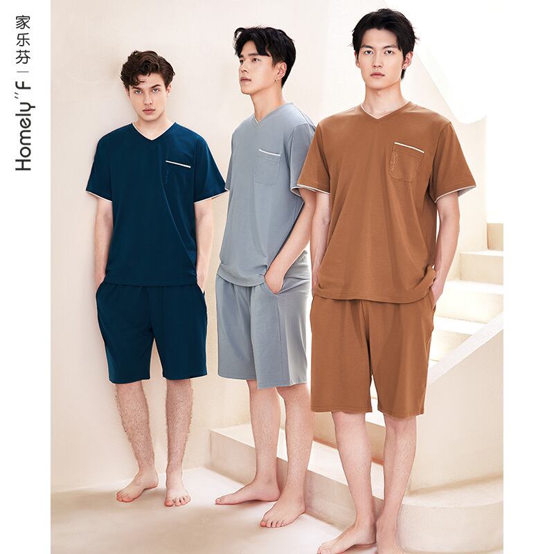 【ライクラコットン】パジャマメンズサマーコットン半袖ショーツホームサービスメンズサマー薄手メンズスーツ jial43054126469