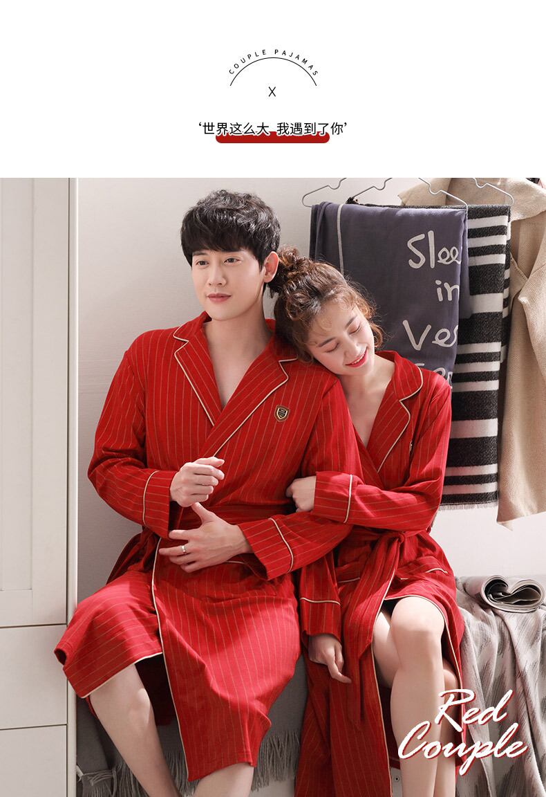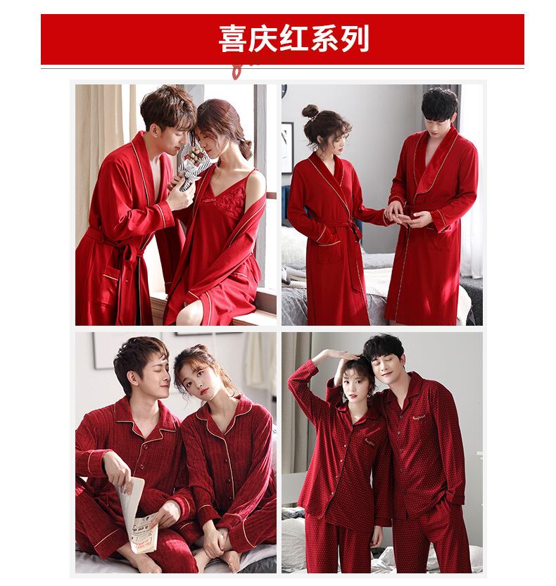 カップルの新しい結婚式のドレッシングガウン結婚式のお祝いの赤いパジャマ女性の綿の長袖のセクシーなネグリジェ男性のバスローブスーツ jial58501816371