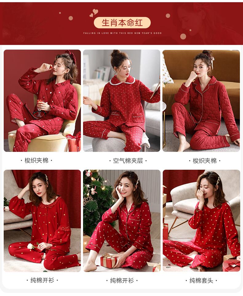 カップルパジャマ女性の春と秋の純綿長袖ホームサービス男性の新婚夫婦と花嫁の結婚式のお祝いの赤いスーツ jial28082933854