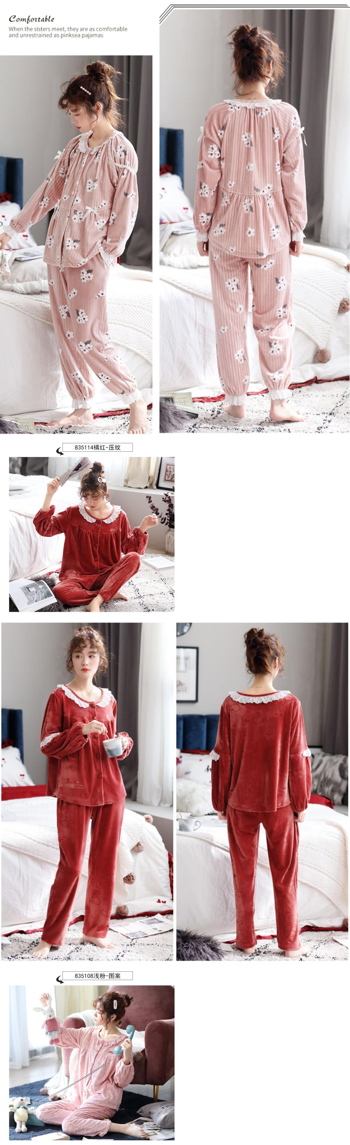 パジャマレディース秋冬冬珊瑚フリースプラスベルベットの暖かさは、フランネルの春と秋の薄いスタイルのスーツを厚くしません jial30230620332