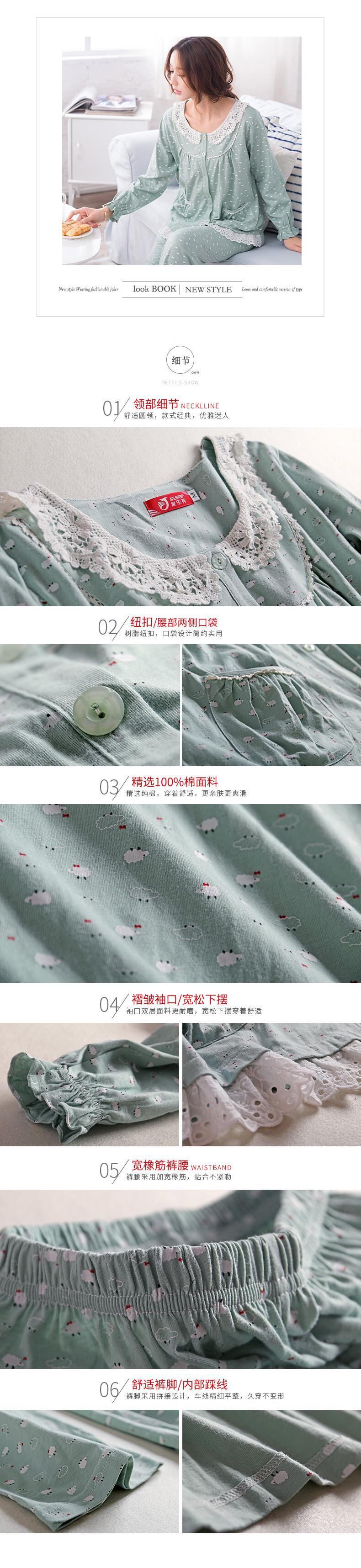 パジャマレディース春秋秋コットン長袖ホームサービス薄手コットンフレッシュルーズラージサイズスーツ jial75320029509