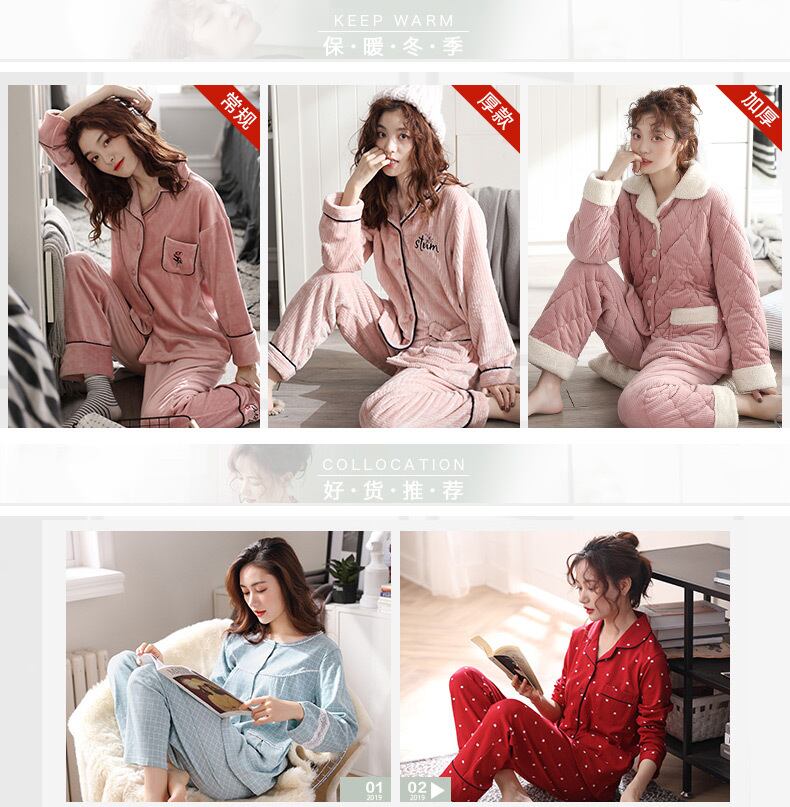 パジャマレディース春秋長袖コーラルフリース薄島フリースホームウェアフランネル秋冬新作スタイル2018 jial9967781785