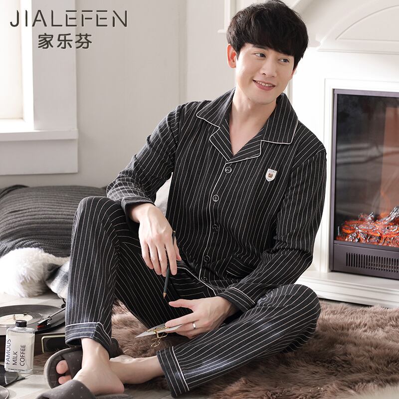 純綿長袖ホームサービスのパジャマメンズ春と秋モデル綿のお父さんプラスサイズのスーツの男性の秋と冬モデル jial27564715454
