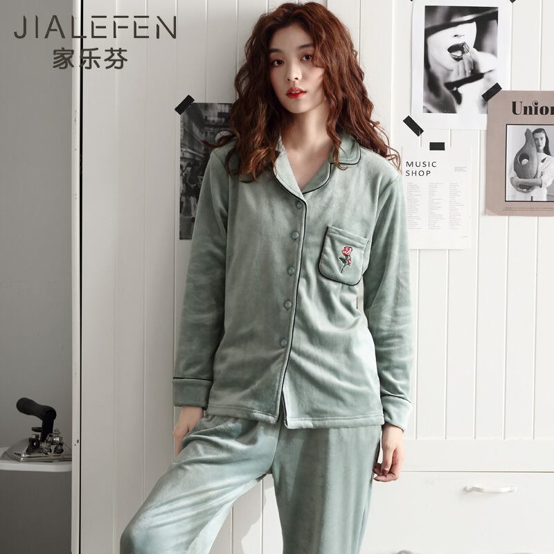 パジャマレディース春秋薄珊瑚フリース長袖アイランドフリースフランネルホームサービス秋冬スーツ jial64606363314