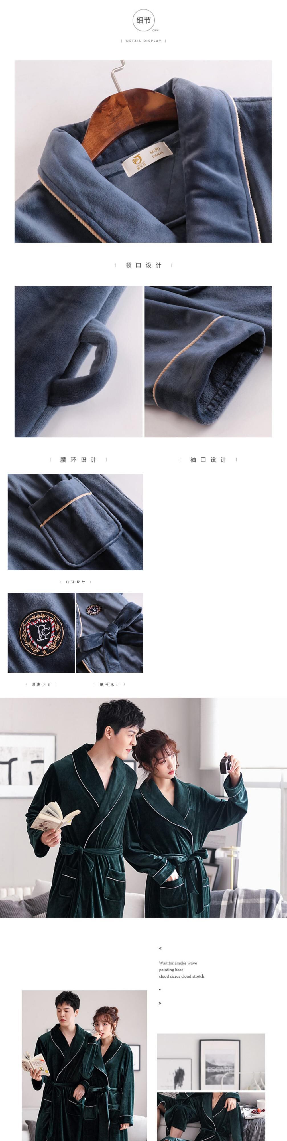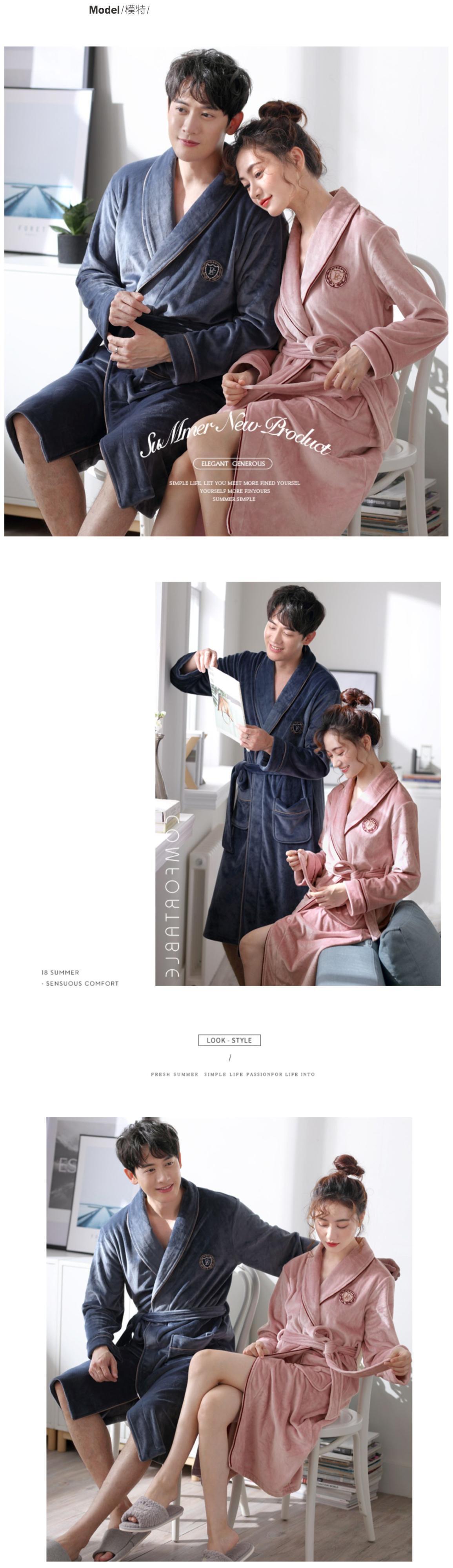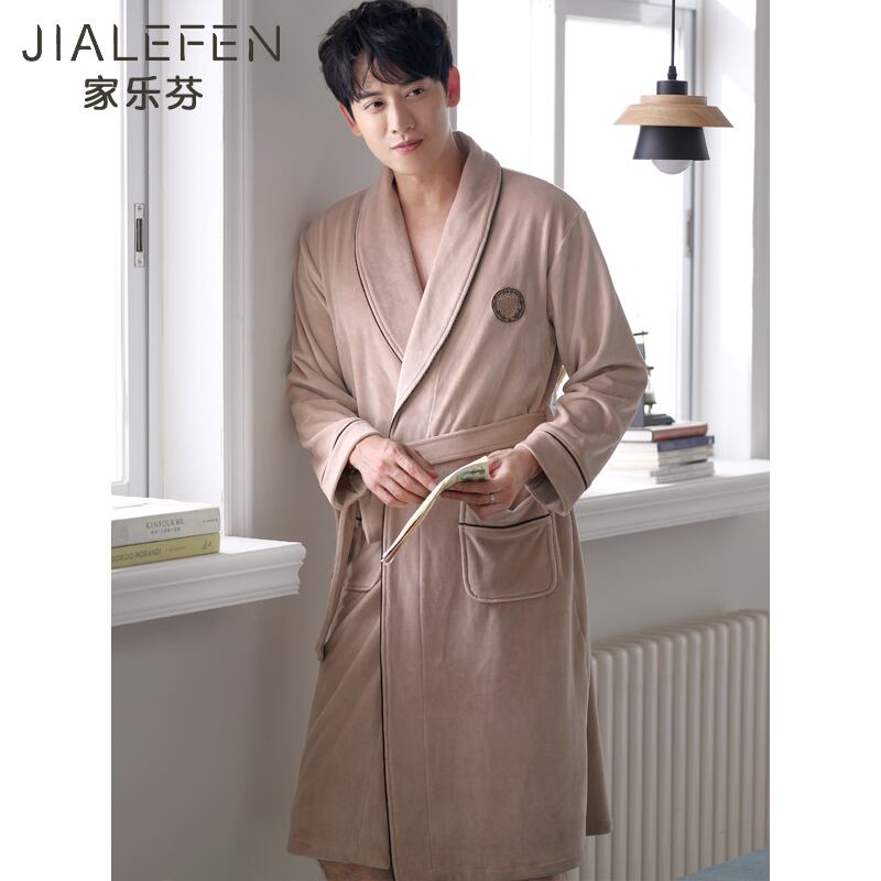 パジャマメンズ春秋薄珊瑚フリース秋冬暖かいフランネルナイトガウンバスローブロングモーニングガウン jial93995662826