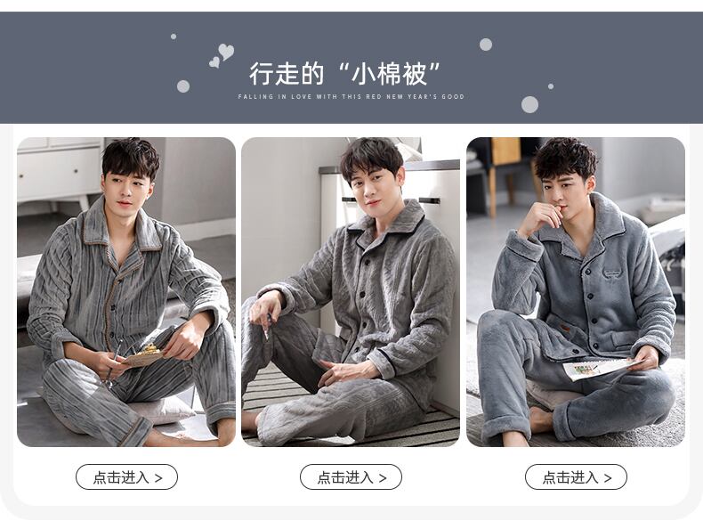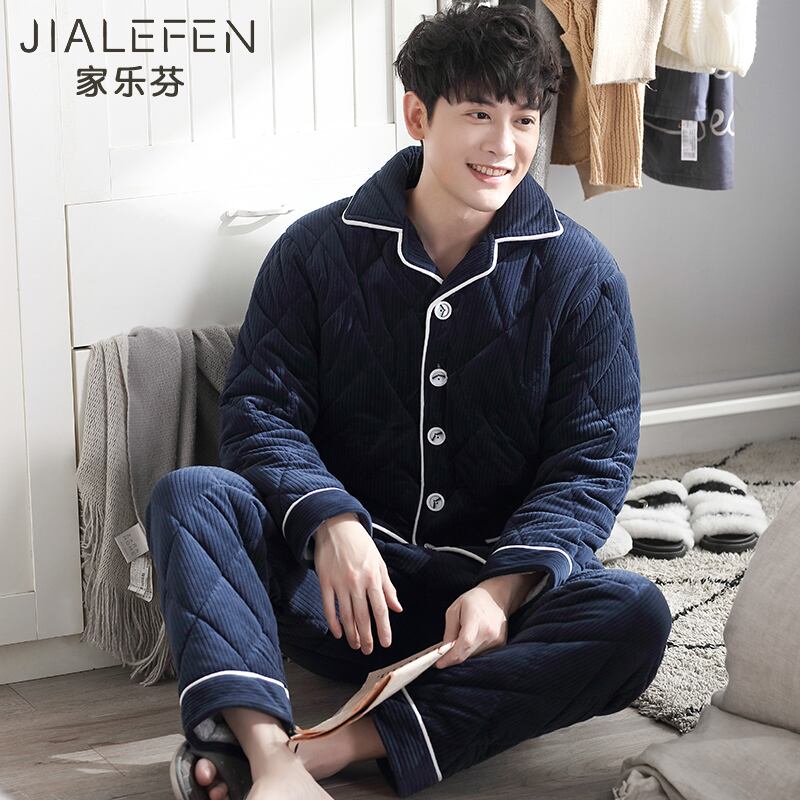 パジャマメンズ冬サンゴフリースキルトジャケット秋冬3層厚のフランネルで暖かく、ベルベット冬 jial97222280776