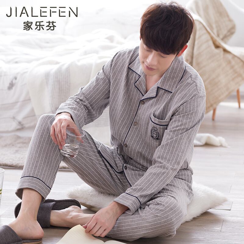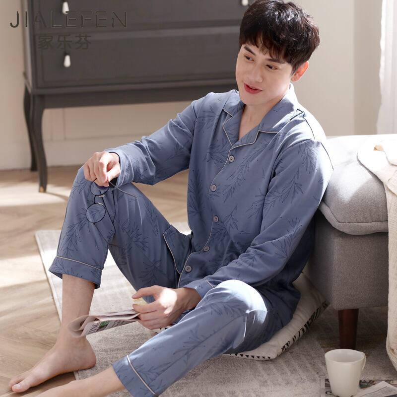 パジャマメンズ春秋コットン長袖ホームサービス秋冬薄手コットン中年お父さんルーズプラスサイズ jial49453748253