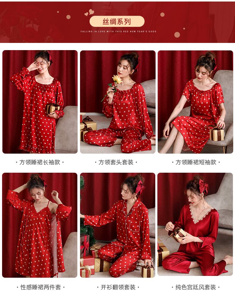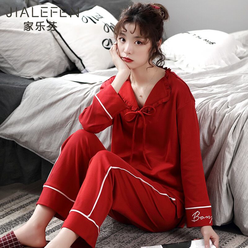 パジャマレディース春秋モデル秋コットン長袖ホームサービスコットンナタルレッドプリンセススタイルスーツ jial44061950246