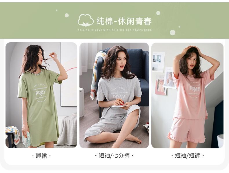 パジャマレディースサマーコットン半袖ショーツホームサービスサマーシンコットンはカジュアルなツーピーススーツの外で着用できます jial89438373387
