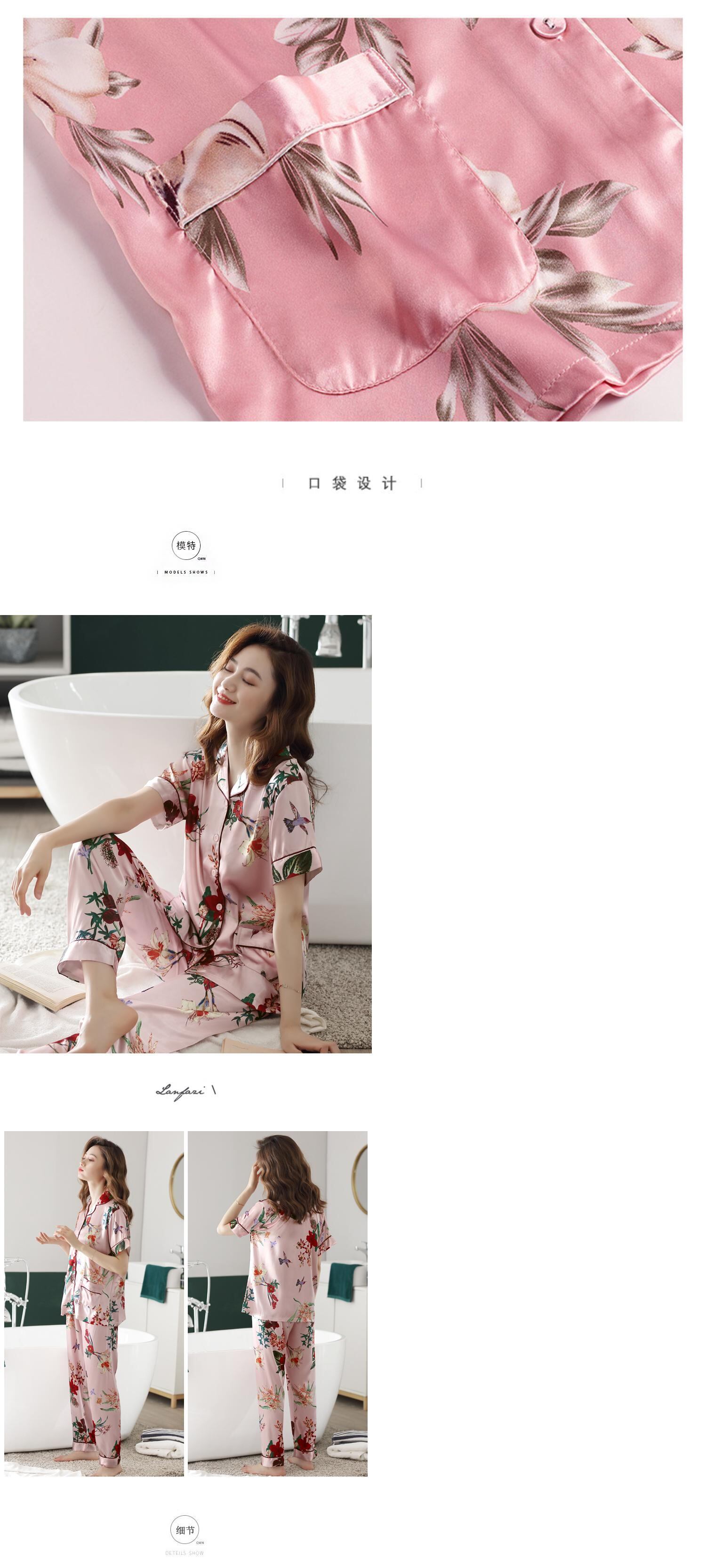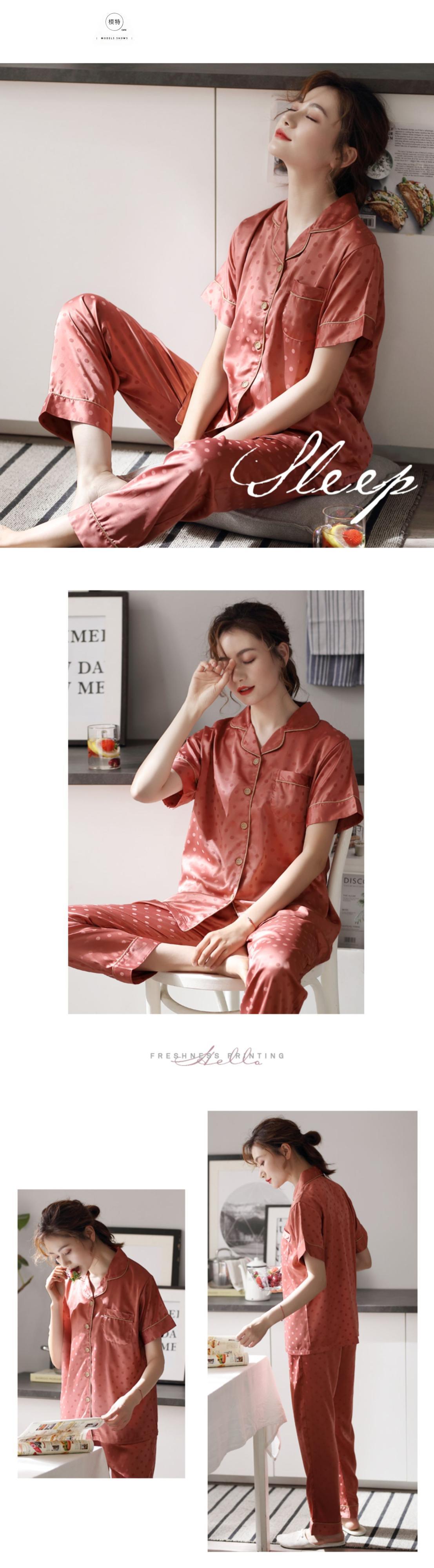 パジャマレディースサマーアイスシルク薄夏半袖パンツシルクホームサービスイミテーションシルクツーピーススーツ jial94422411140