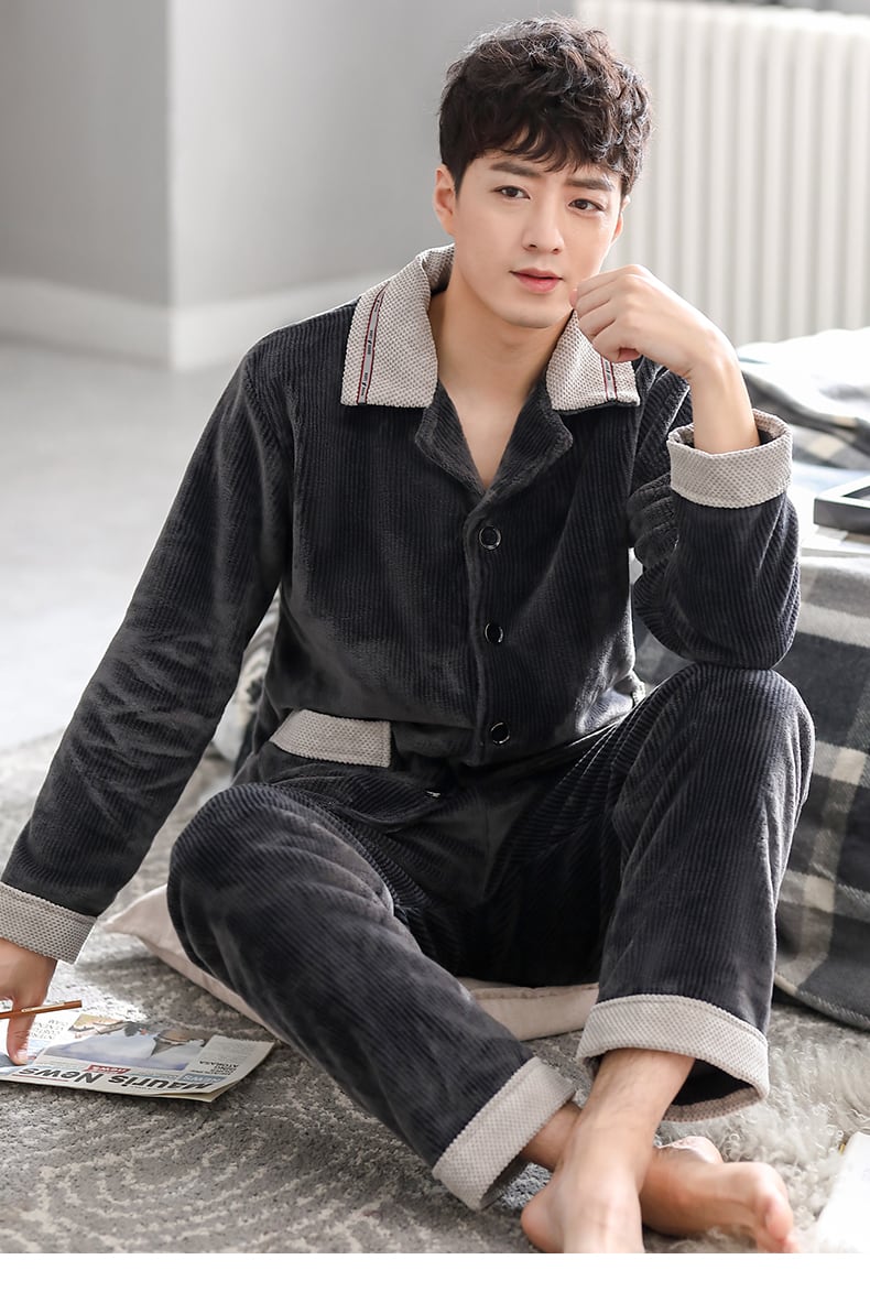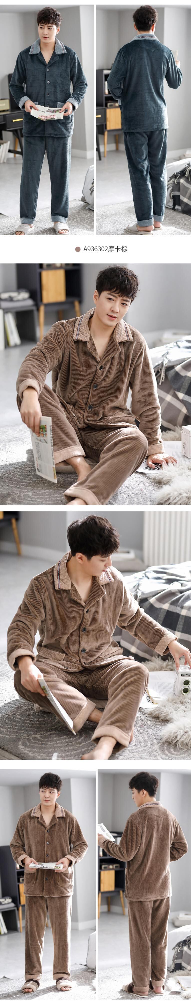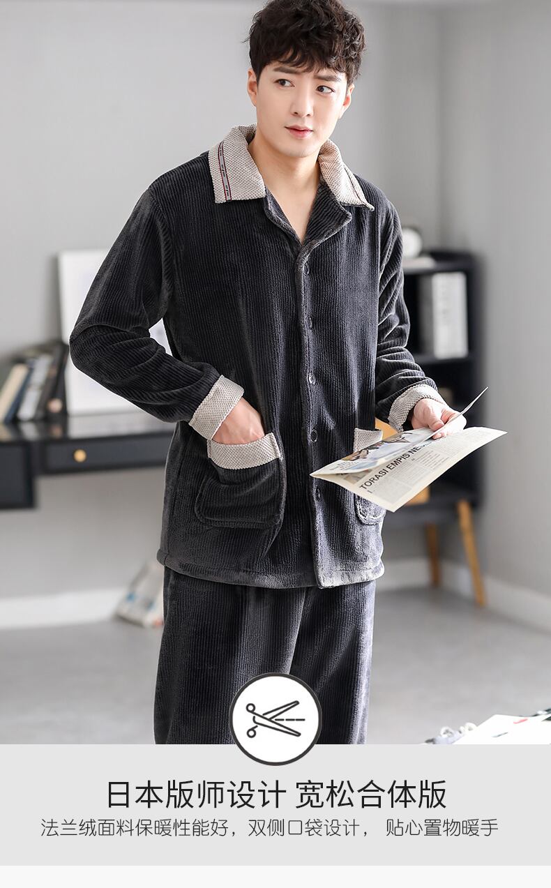 フランネルパジャマメンズ秋冬モデル冬サンゴベルベット厚手プラスベルベット暖かい家庭服ルーズラージサイズ冬 jial88770090287