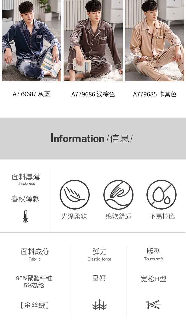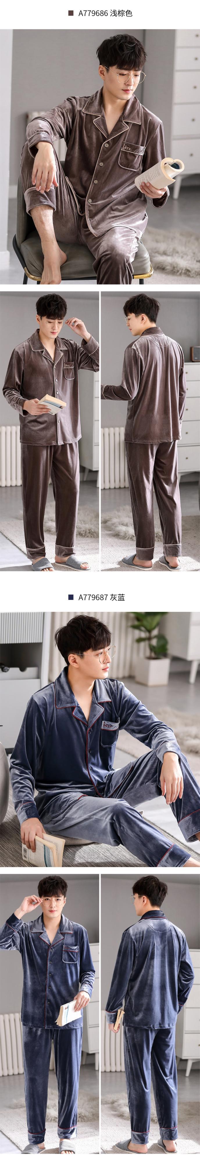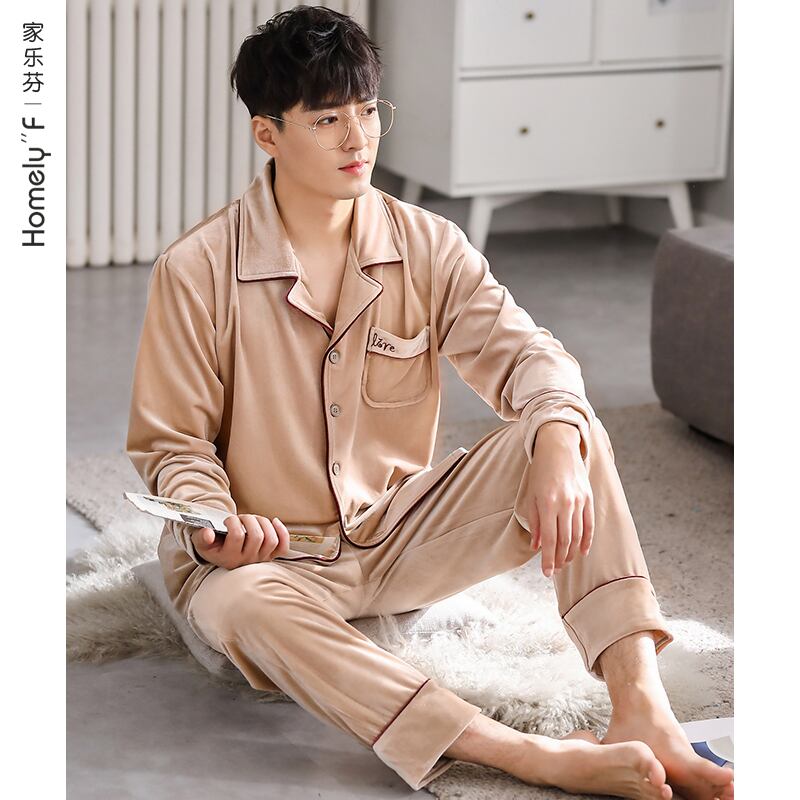 カルフールパジャマメンズ春秋ゴールドベルベット長袖ホームウェアメンズ秋冬モデルと冬薄モデルメンズスーツ jial34525504518