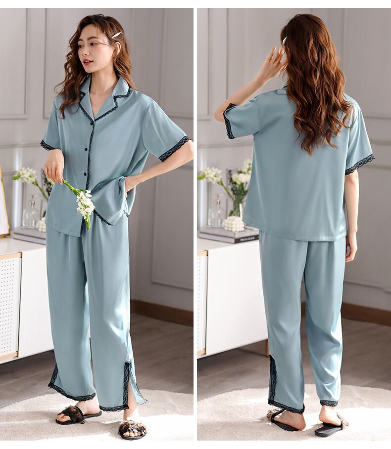 パジャマレディースサマーアイスシルク半袖パンツホームサービスシミュレーションシルク高品質薄夏ラージサイズスーツ jial31119592937