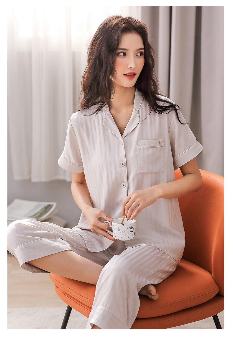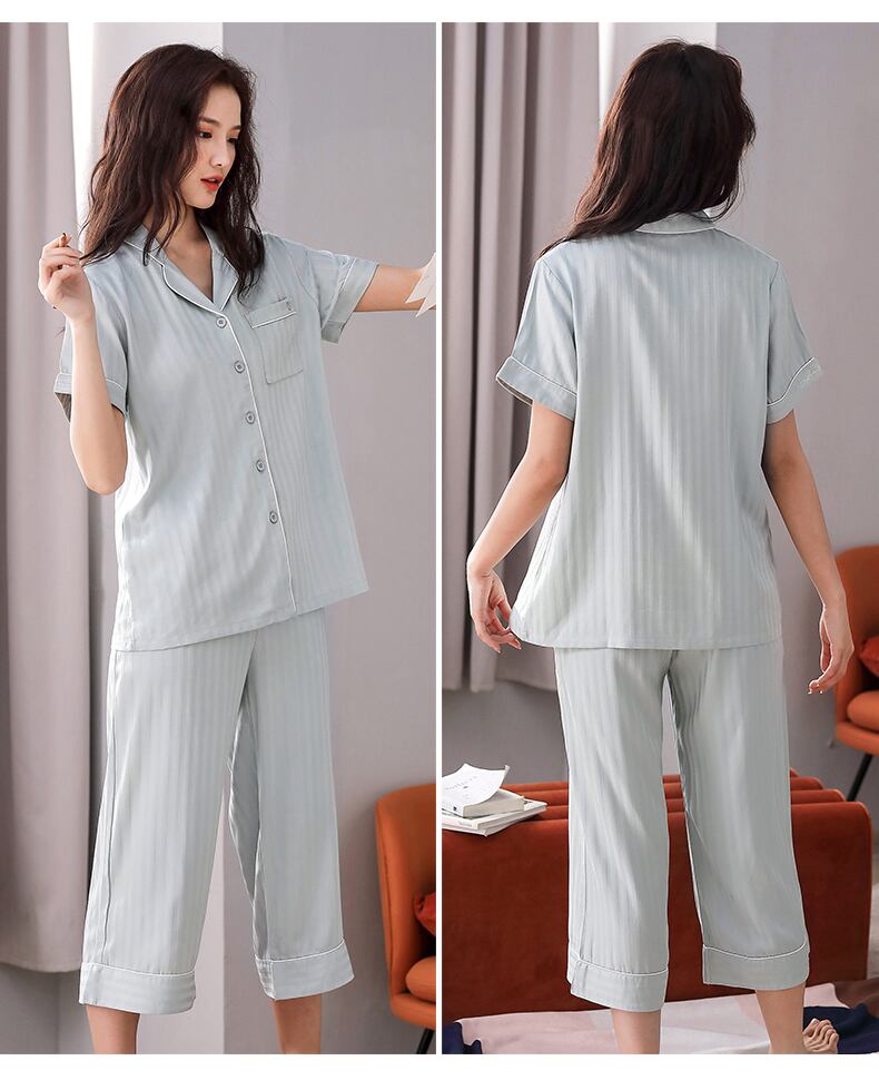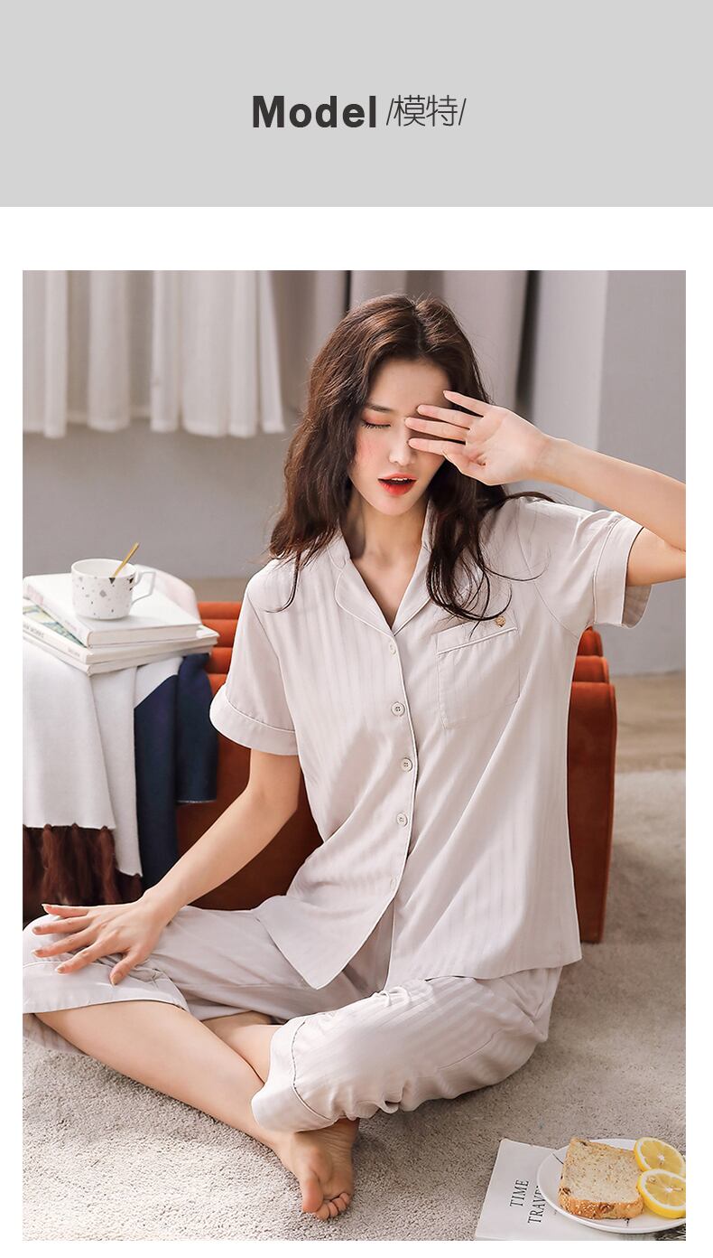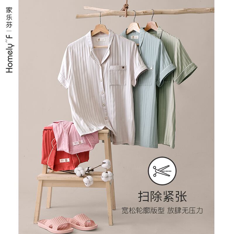 織り綿ガーゼパジャマレディース夏綿半袖ズボンホームサービス夏薄綿ツーピーススーツ jial9069526182
