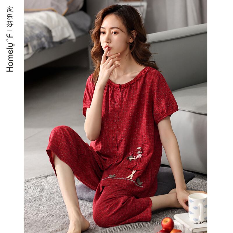 【特典】綿ガーゼパジャマレディースサマーコットン半袖パンツホームサービスサマー薄綿 jial7642577443