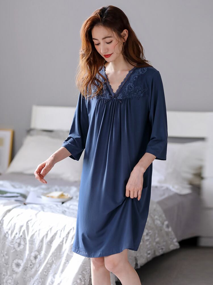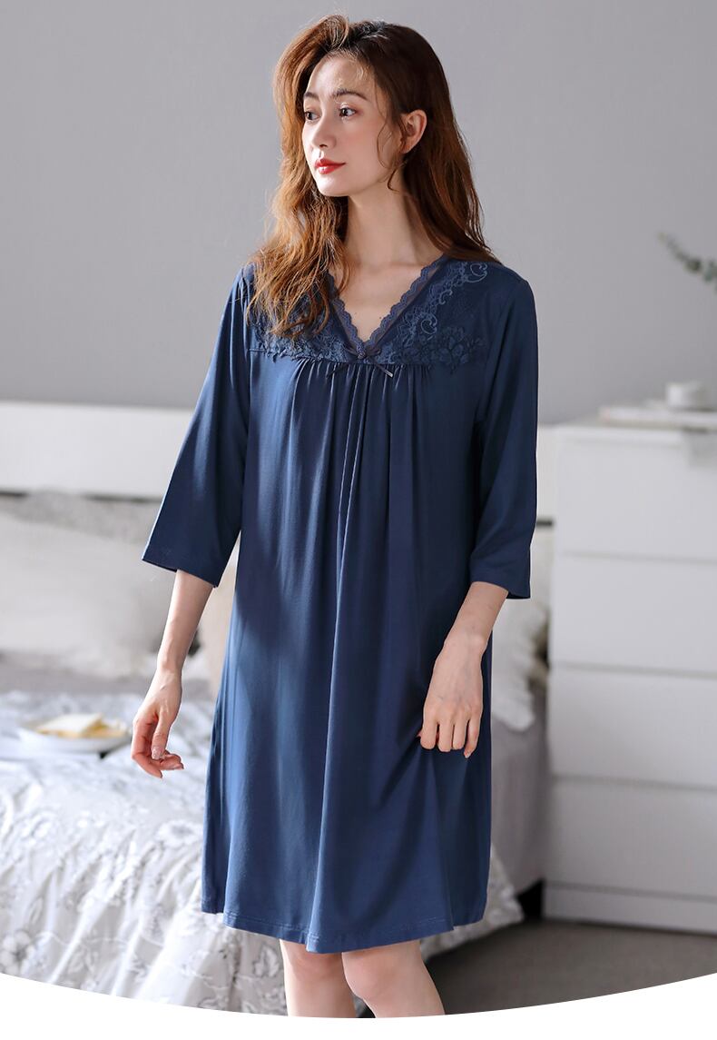 ネグリジェレディースパジャマ春夏夏薄切片モーダル7点袖ラージサイズアイスシルク高品質ドレス jial50276623063