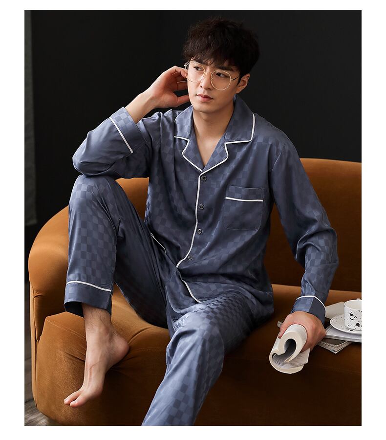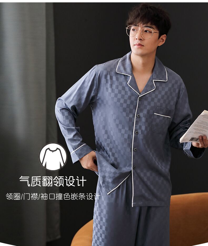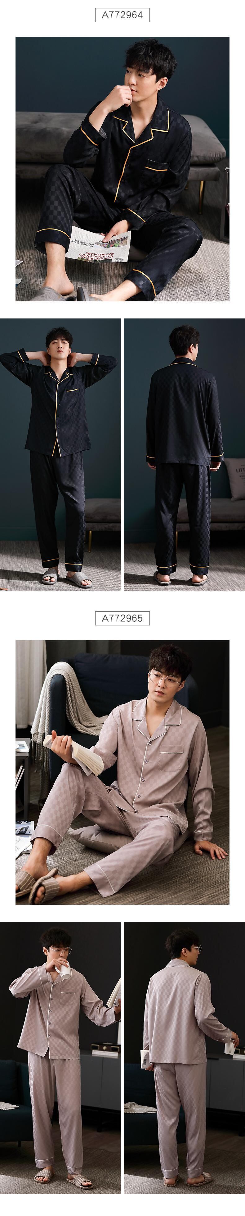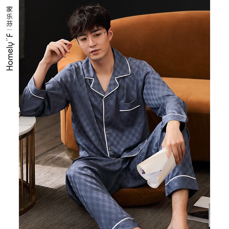 パジャマメンズ春夏夏シルクアイスシルク長袖ホームウェア春秋薄切片人工シルクスーツ jial44447919098
