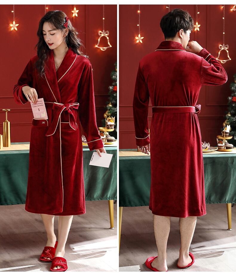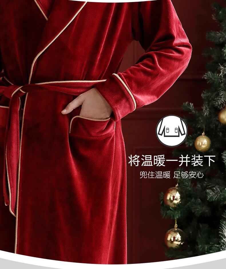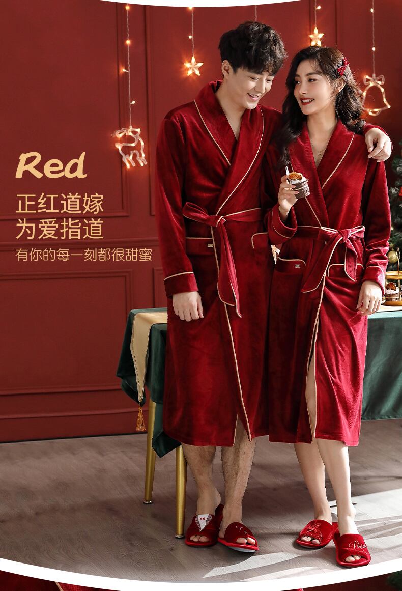 カップルのパジャマ、男性のナイトガウン、朝のガウン、女性の秋と冬のモデル、結婚式、新婚夫婦、花嫁介添人、サンゴのフリース、フランネル、大きな赤 jial15410121132