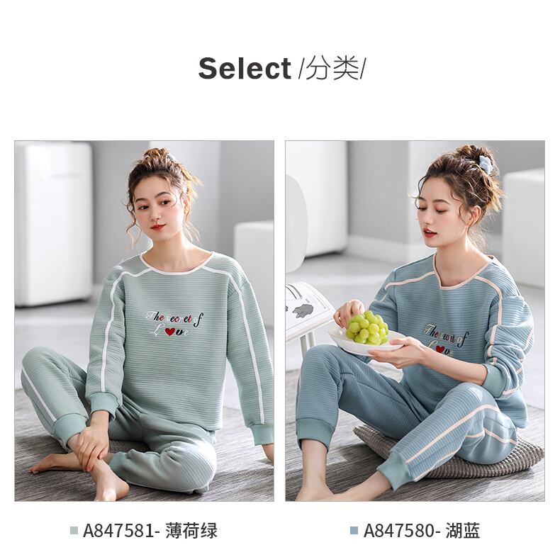 パジャマレディース春秋秋服厚手の純綿長袖家庭服綿エアコットンサンドイッチ秋冬スーツ jial43628546221