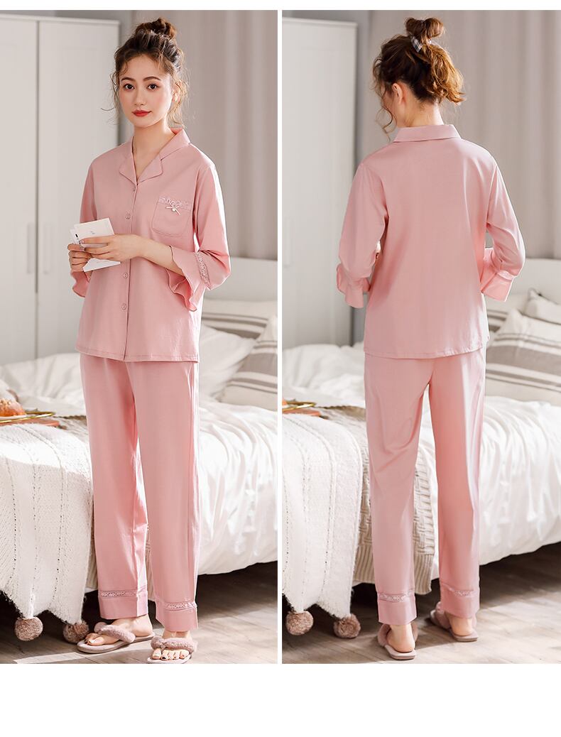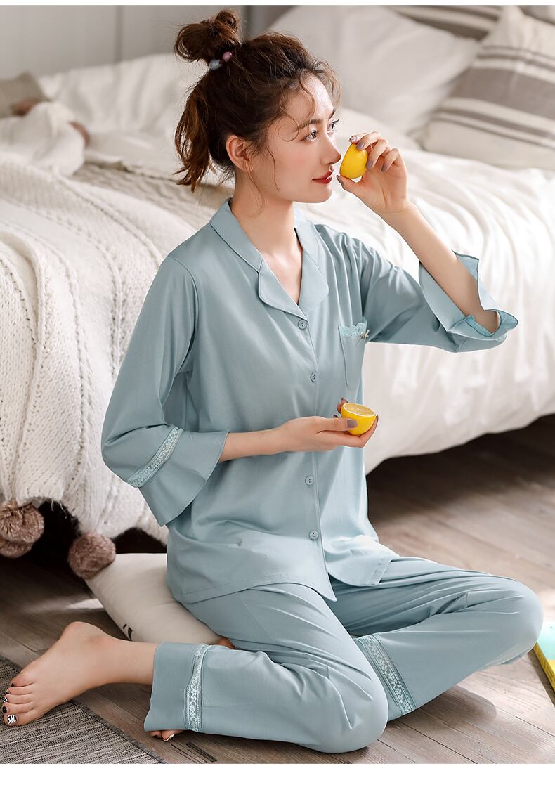 【マーセルコットン】パジャマレディース春夏コットン七分袖長袖ホームウェアコットン春秋薄手のスーツ jial88512943902