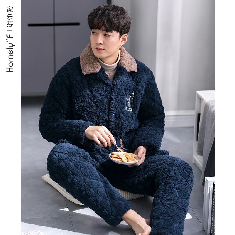 パジャマメンズ冬3層厚厚超厚キルティングフランネルコーラルフリースプラスベルベットホームサービス秋冬モデル冬 jial21494688866