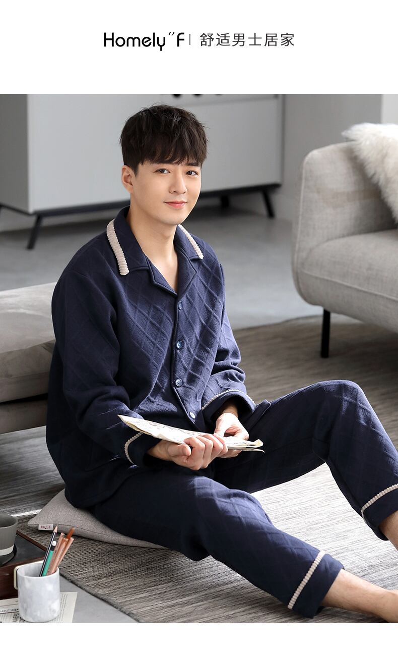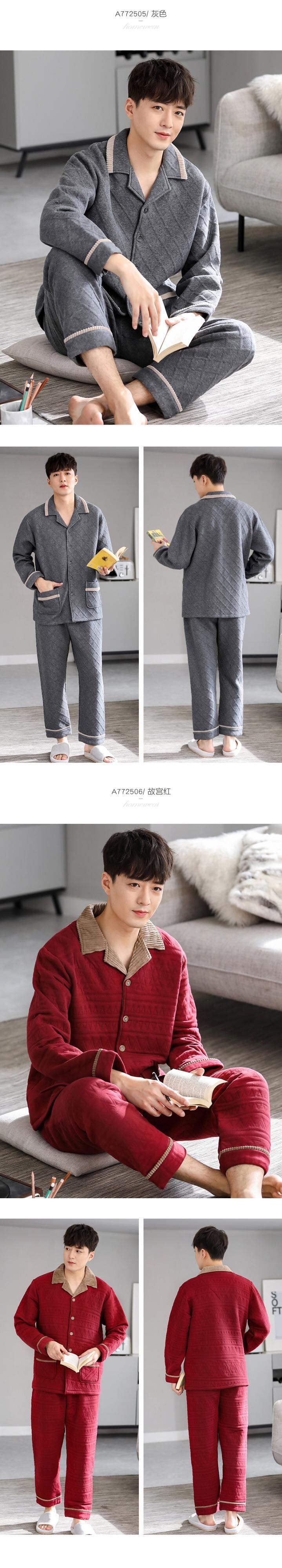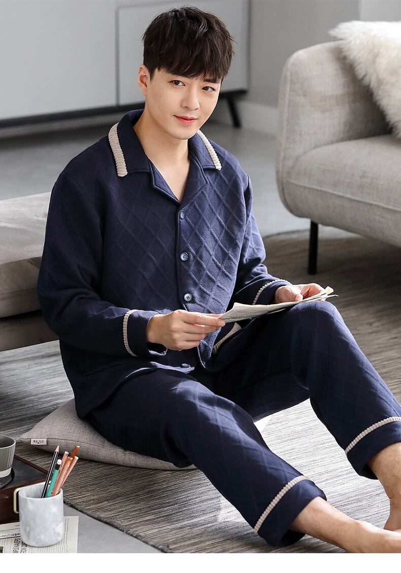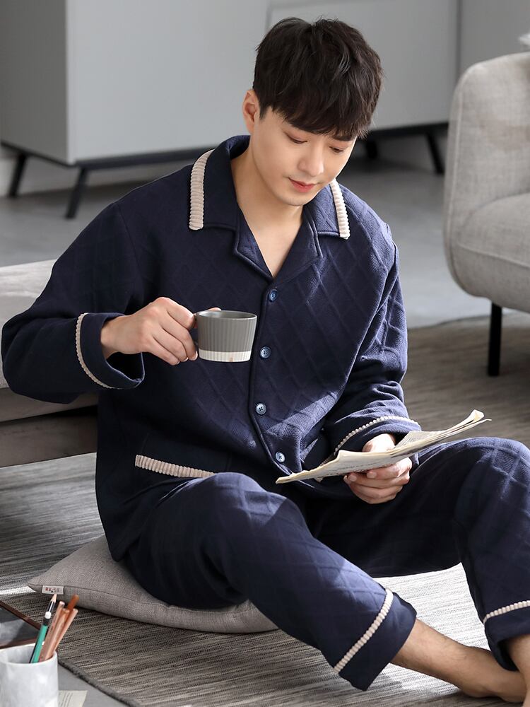 パジャマメンズ春秋厚めピュアコットン長袖ホームウェア秋冬モデル冬キルティング温風コットンコットン jial15235961486