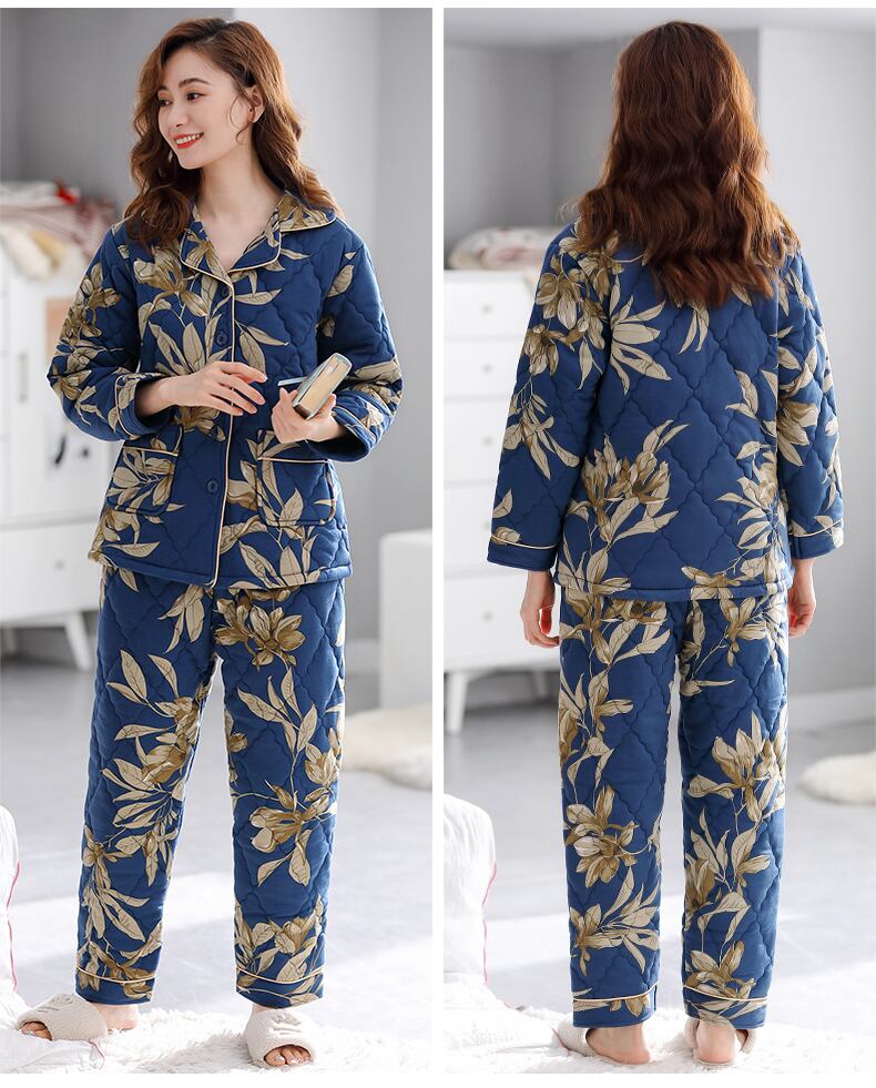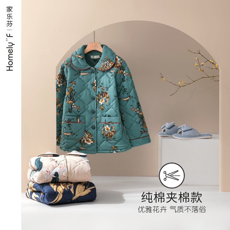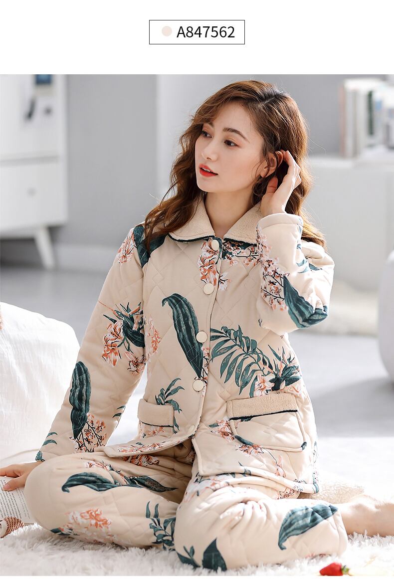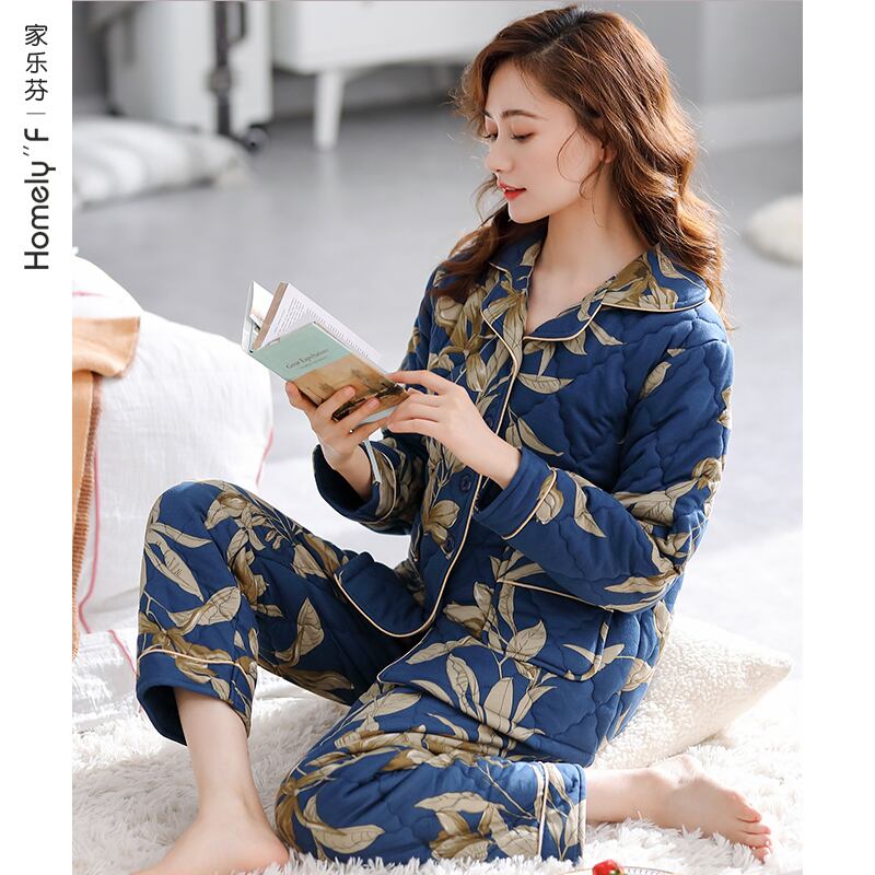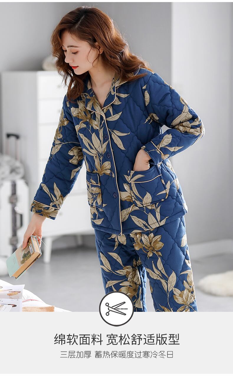 パジャマレディース秋冬モデル厚手の純綿キルティングコットン冬のホームサービス中年のお母さんが暖かく保つ jial41857824643