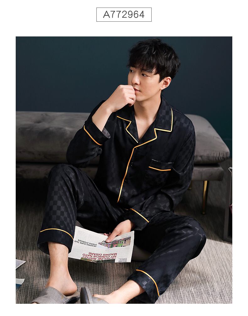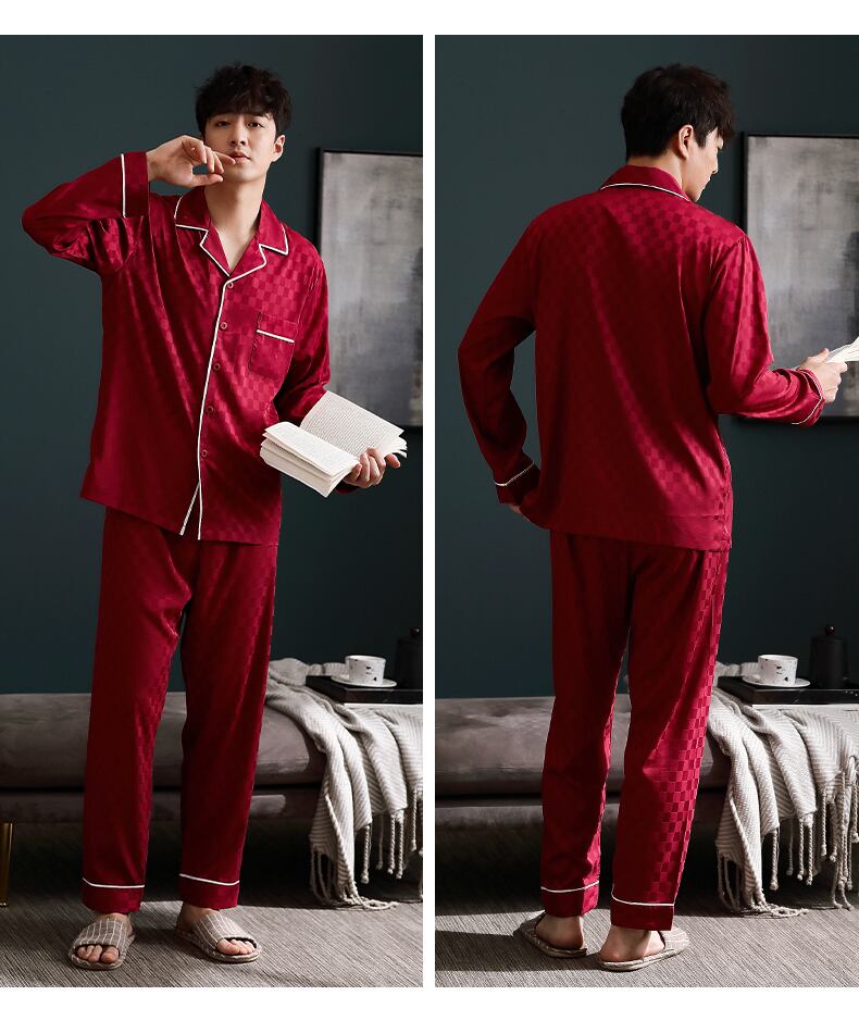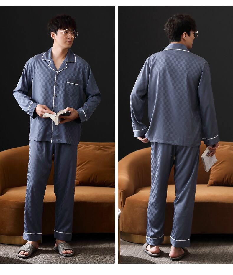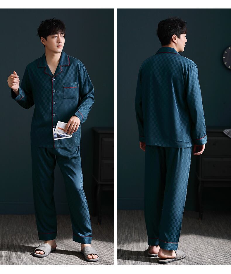 パジャマメンズ春夏夏シルクアイスシルク長袖ホームウェア春秋薄切片人工シルクラージサイズスーツ jial51841440061