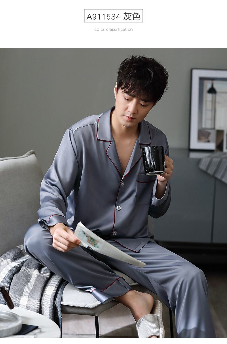 パジャマメンズ春夏夏長袖シルクアイスシルクホームサービス春秋薄片人工シルクハイエンドスーツ jial39219088107