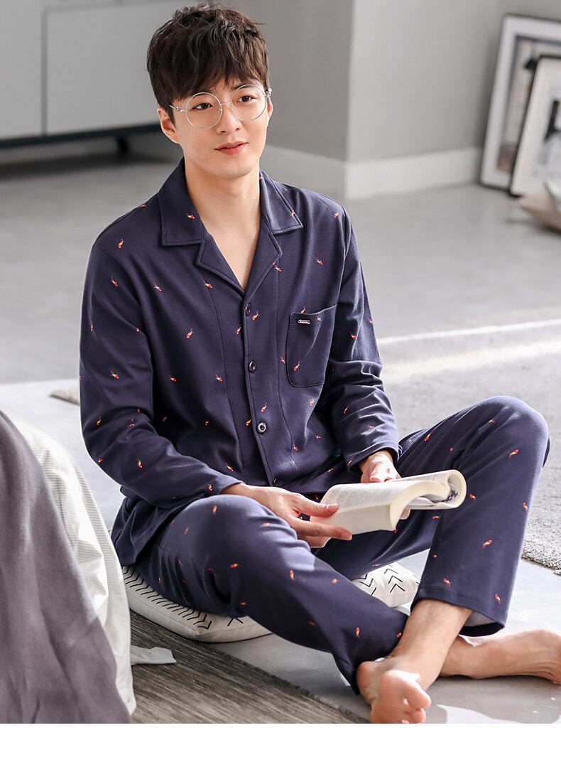 パジャマメンズ秋春秋モデル秋コットン長袖ホームウェアコットンメンズ秋冬モデル薄手のスーツ jial20120736171