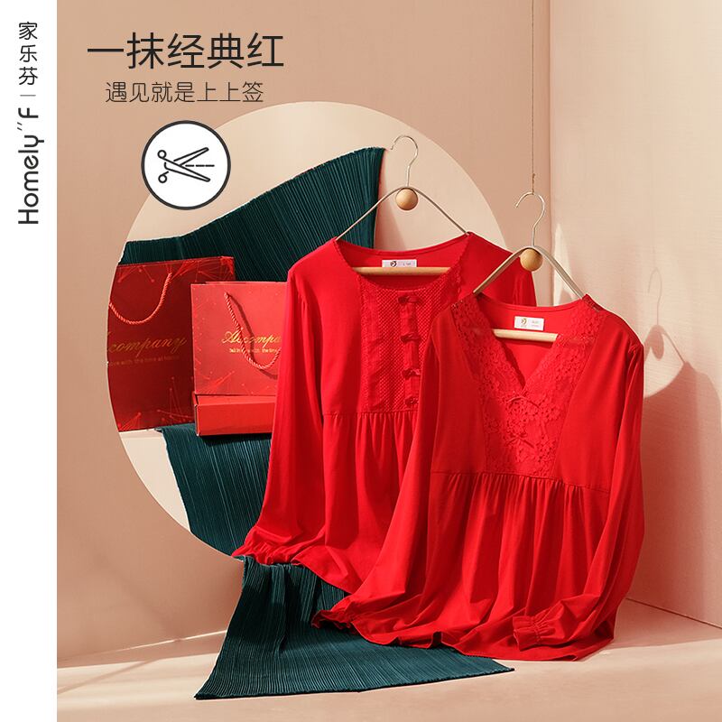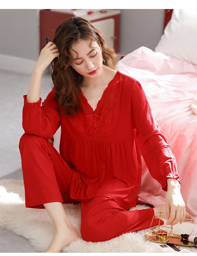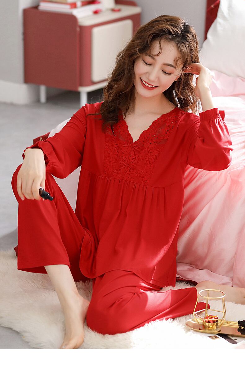 パジャマレディース春秋長袖薄モーダルコットンシルクナタルレッドオックスホームサービス女性スーツの年 jial90180754765