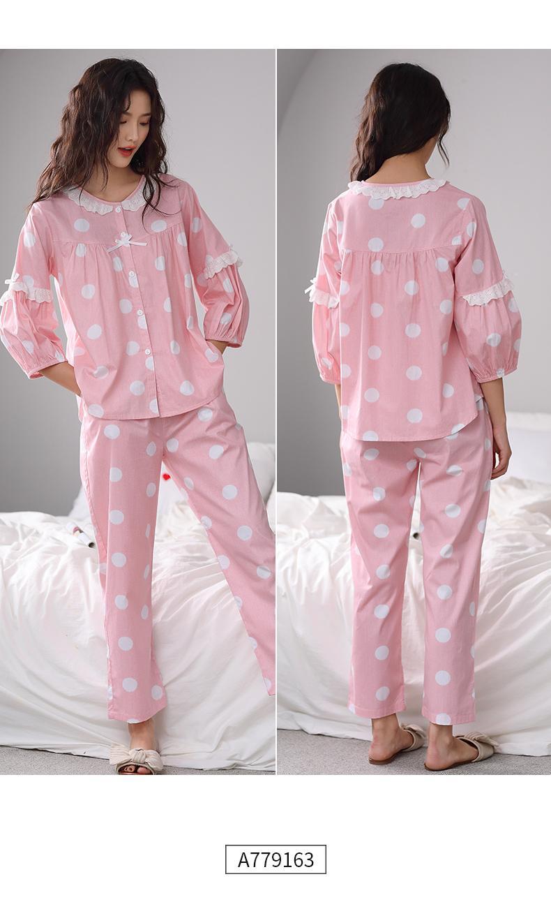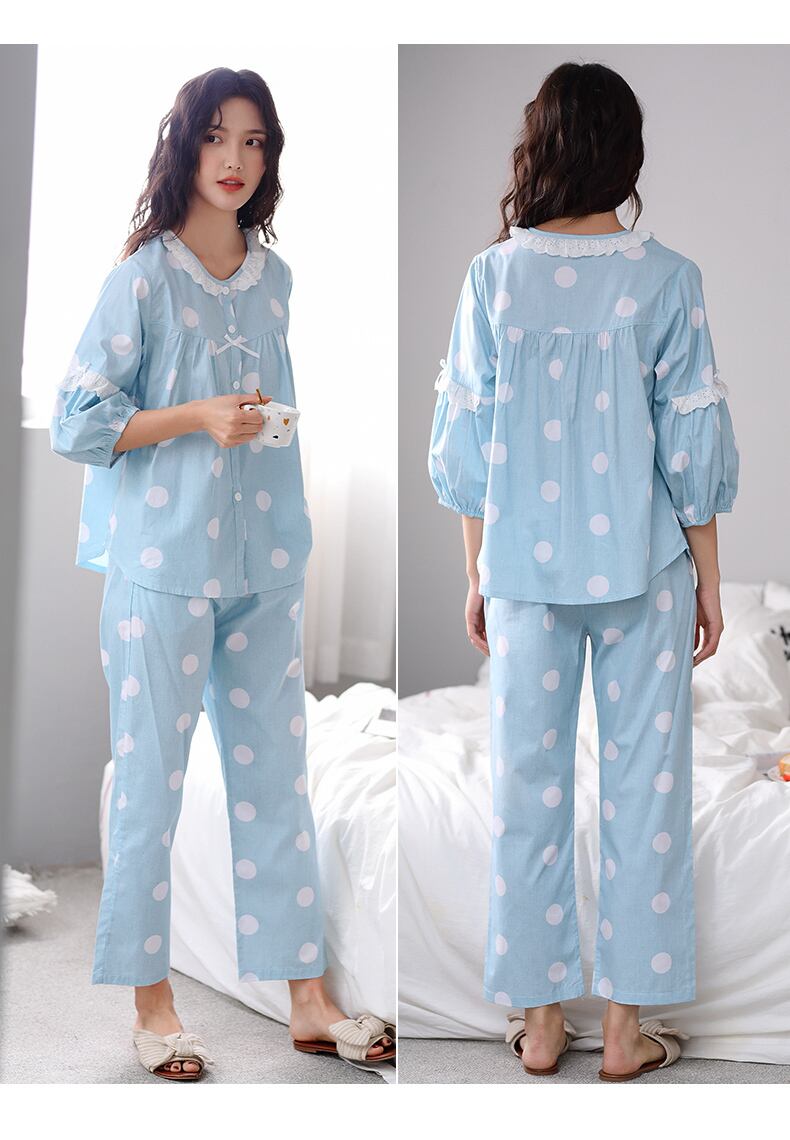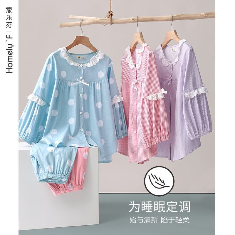パジャマレディース春夏夏長袖コットンホームサービスコットンエアコン服春秋薄切片キュートスーツ jial42485923126