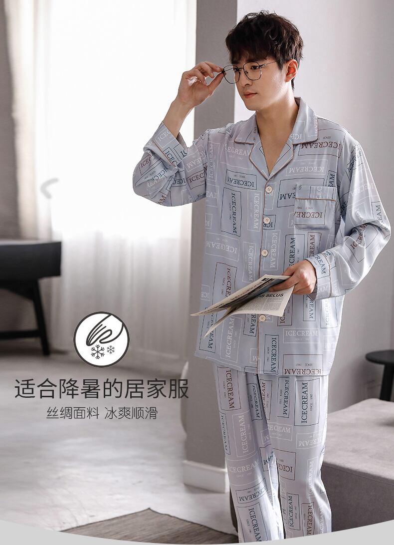 2021年新作パジャマメンズ春夏アイスシルク長袖ホームウェア薄手春秋モデル秋シミュレーションシルク jial95002128142