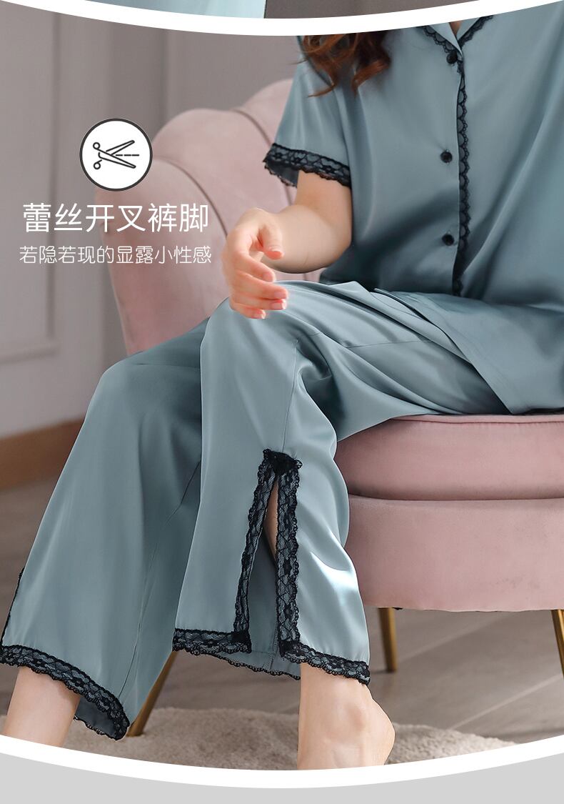 パジャマレディースサマーアイスシルク半袖パンツホームサービスシミュレーションシルク高品質薄夏ツーピーススーツ jial48205554145