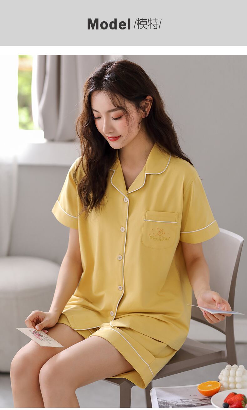 Jialefenパジャマレディースサマーコットン半袖ショーツホームサービスサマーシンコットンカーディガンラージサイズスーツ jial25654372990