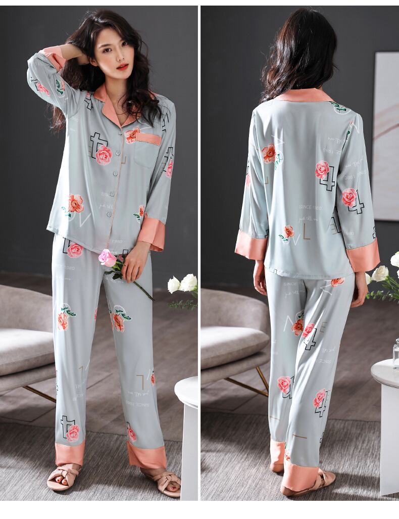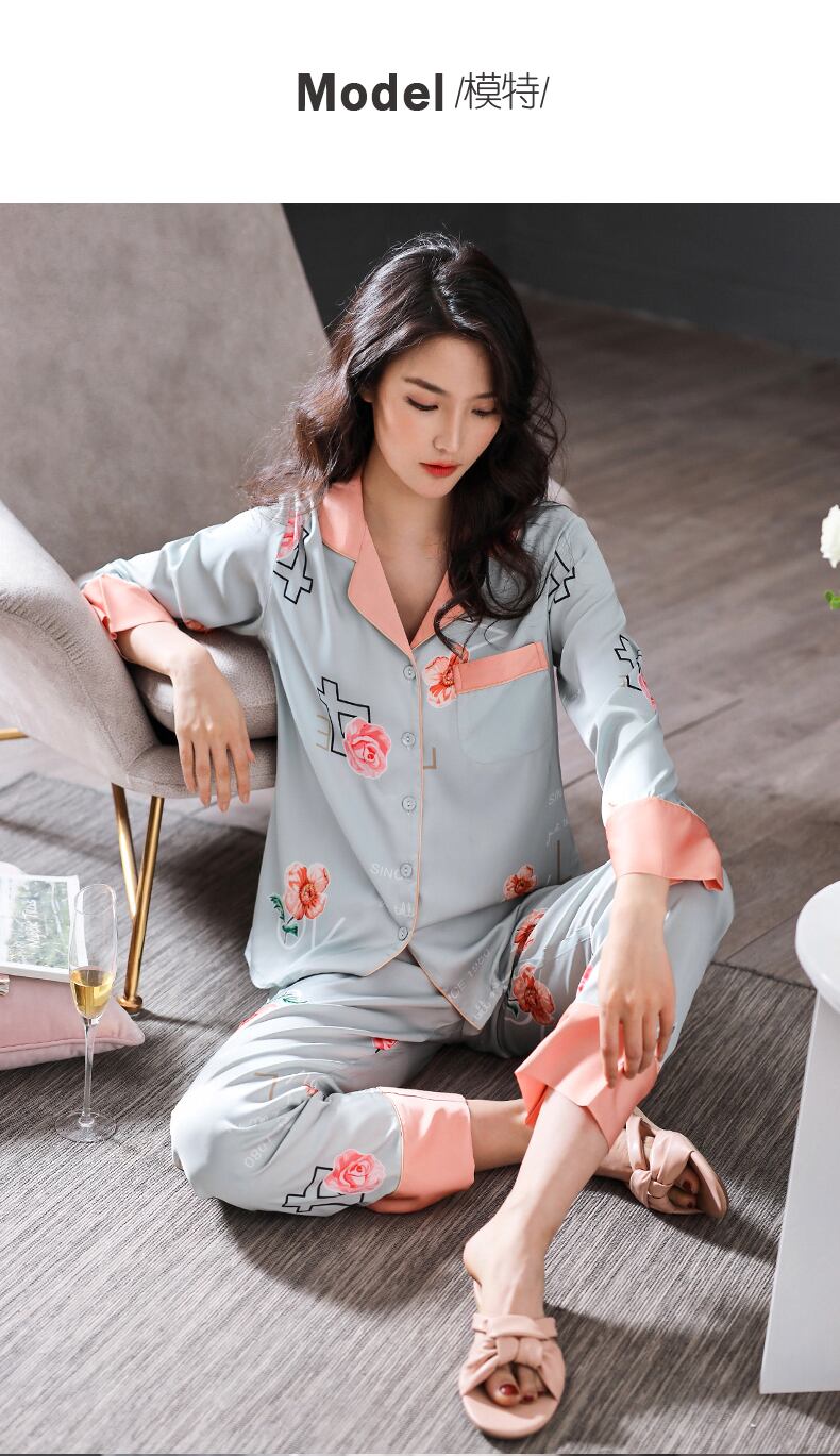 パジャマレディース春夏夏長袖シルクアイスシルクホームサービス春秋薄片人工シルクツーピーススーツ jial30949022010