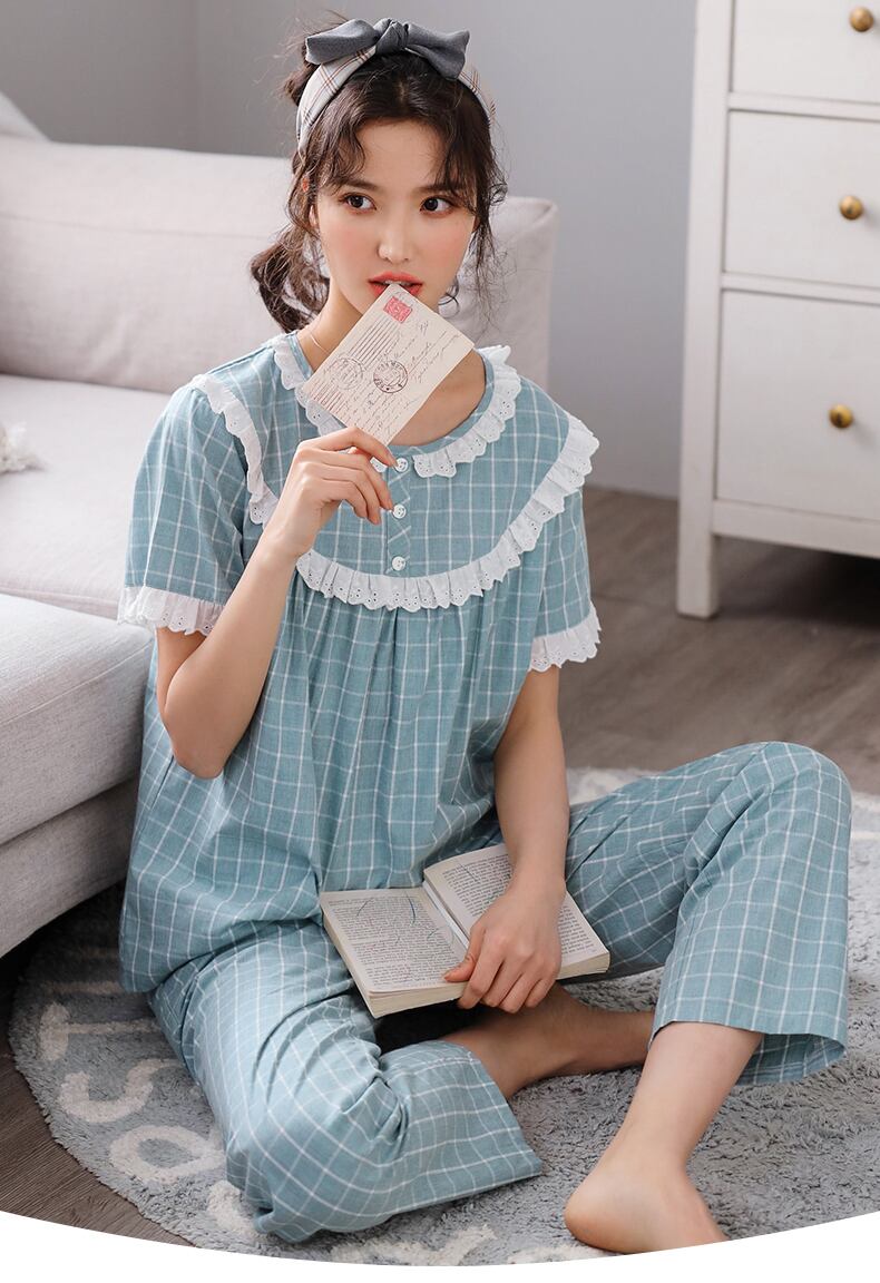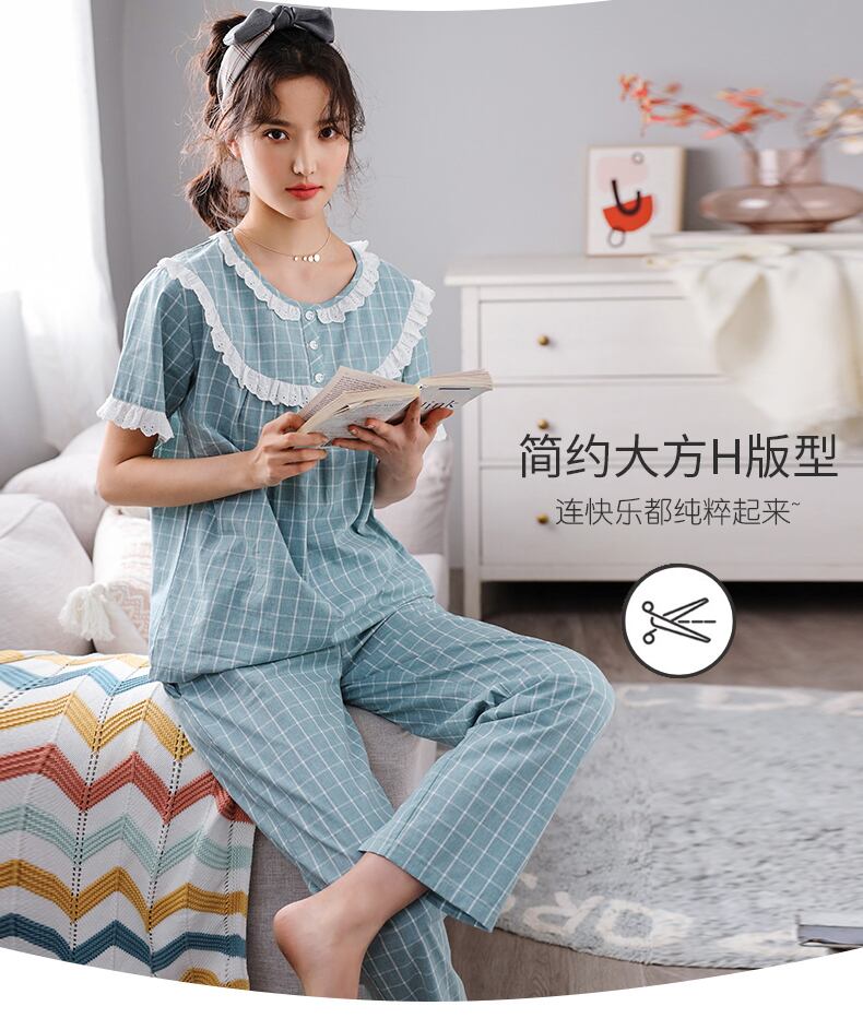 パジャマレディース夏綿半袖ズボンホームサービス夏薄綿綿ガーゼeseかわいいスーツ jial62266850497