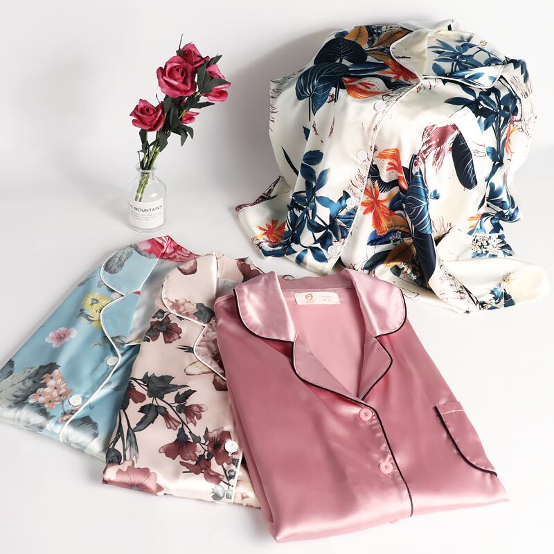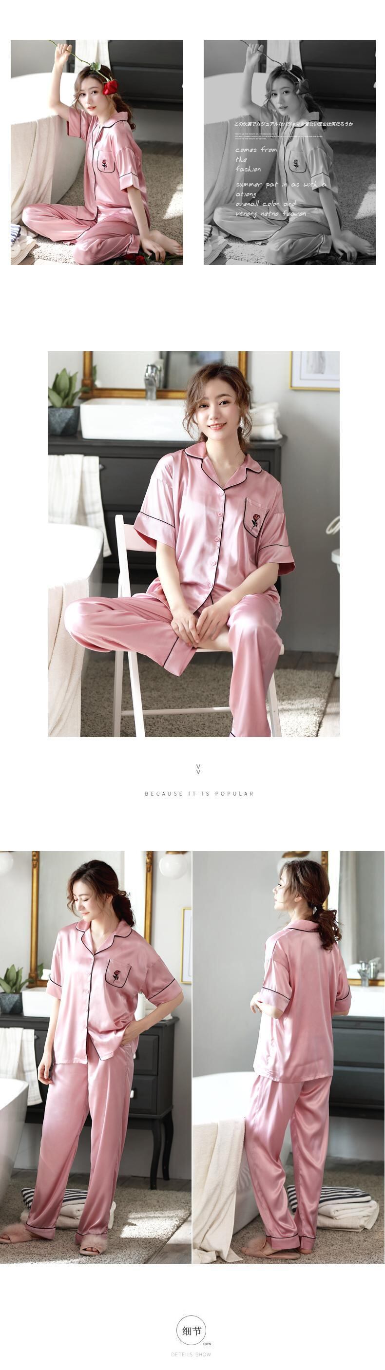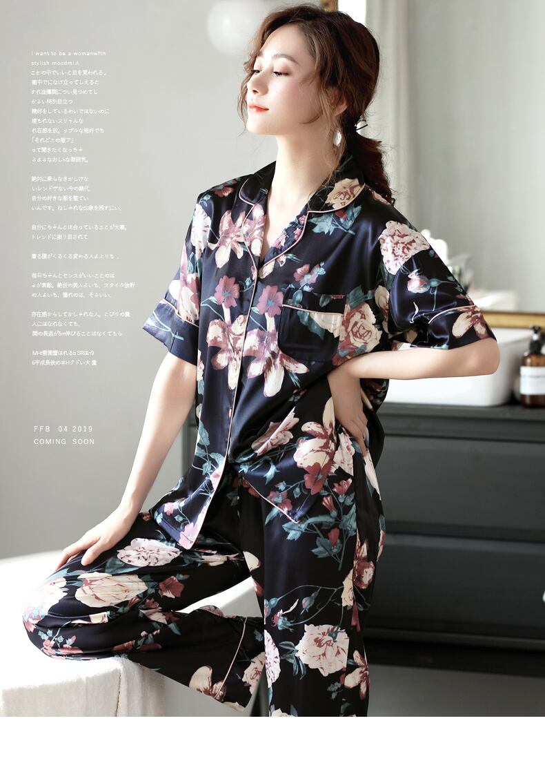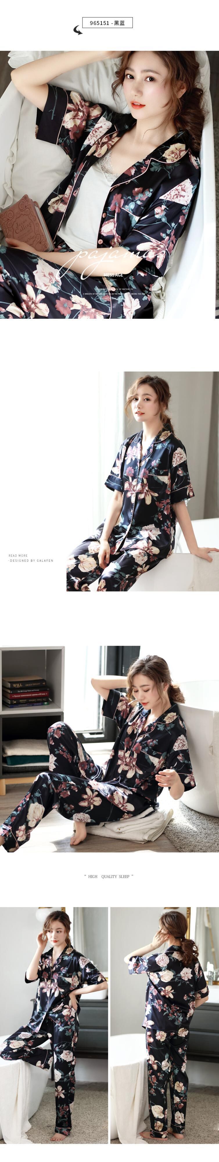 Jialefenパジャマレディースサマーアイスシルク半袖パンツホームサービスサマー薄片シミュレーションシルクバージョンフローラル jial59674363859