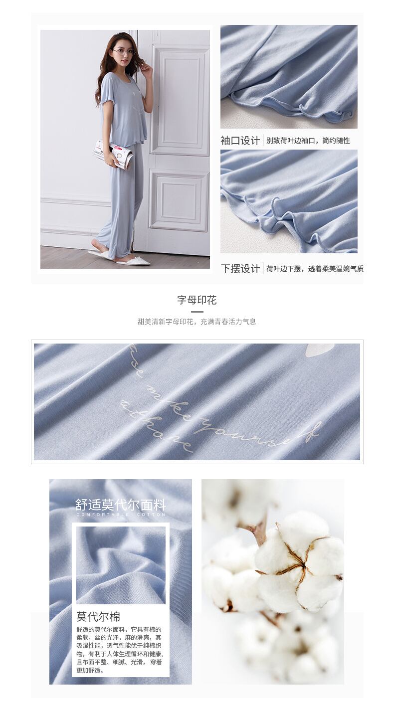 パジャマレディースサマーモーダルコットンシルクコットンシルク半袖パンツホームサービスサマーシンルースラージサイズスーツ jial12390543905