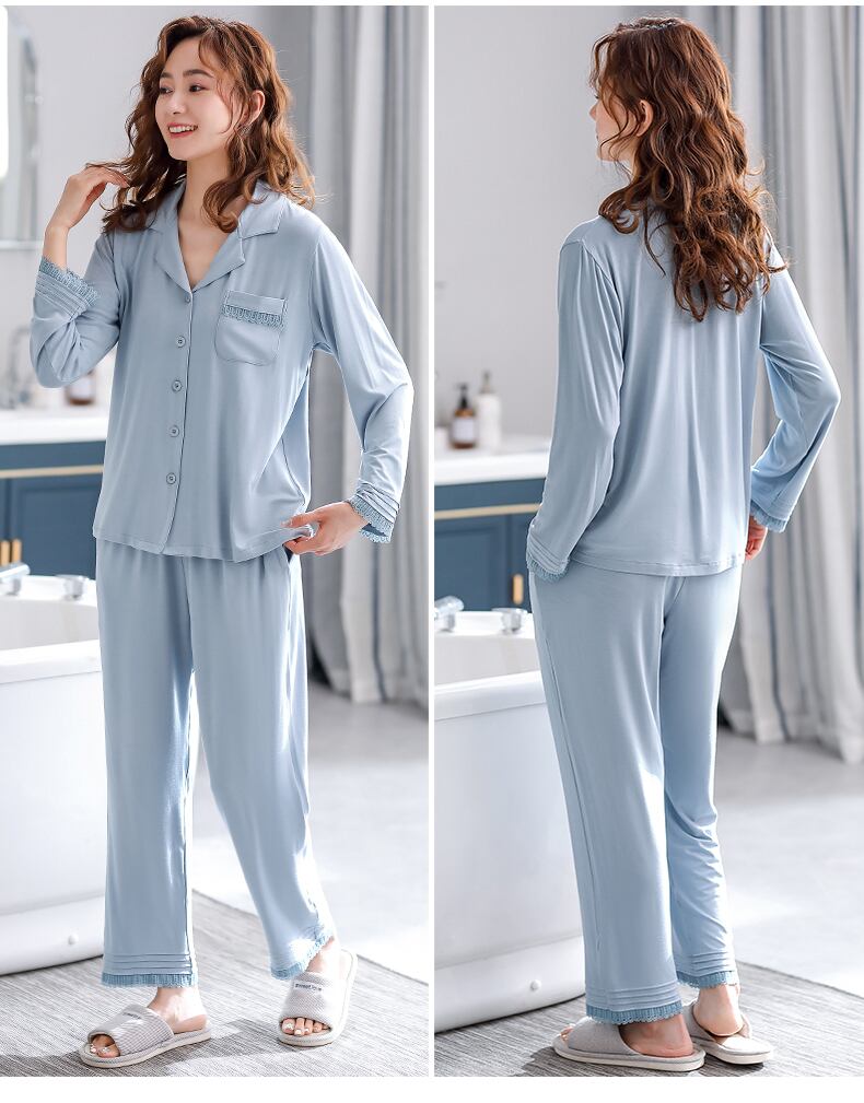 パジャマレディース春春夏モーダルコットンシルクコットンシルク長袖ホームウェア薄手春秋秋大サイズ jial59879037243
