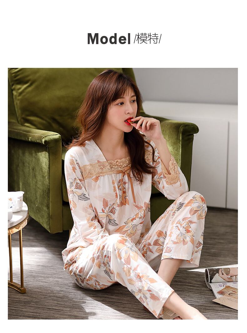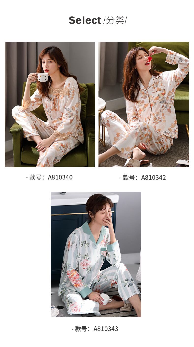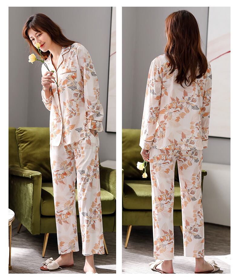 パジャマレディース春夏春薄手の綿長袖家庭服綿ヘッジ母中年春秋スーツ jial92955958352