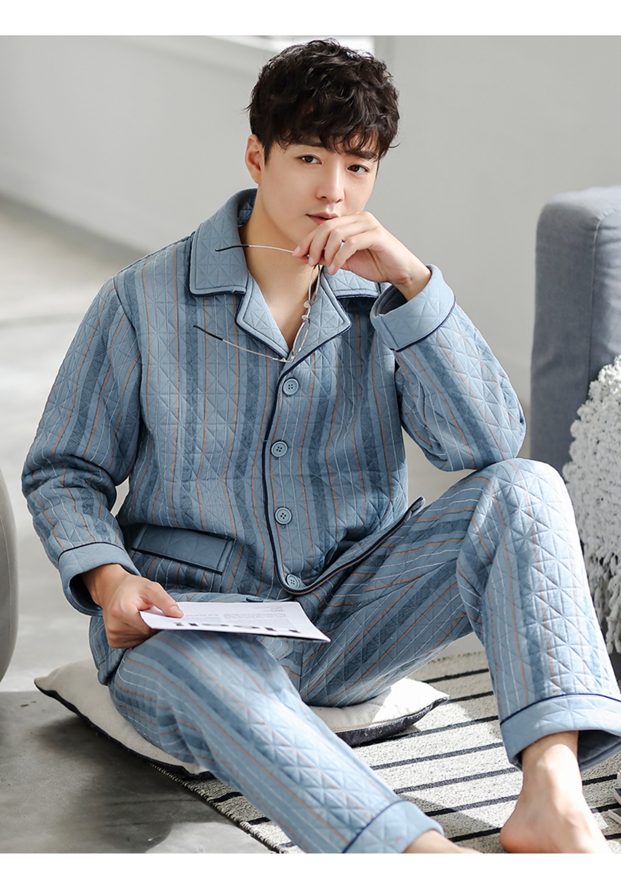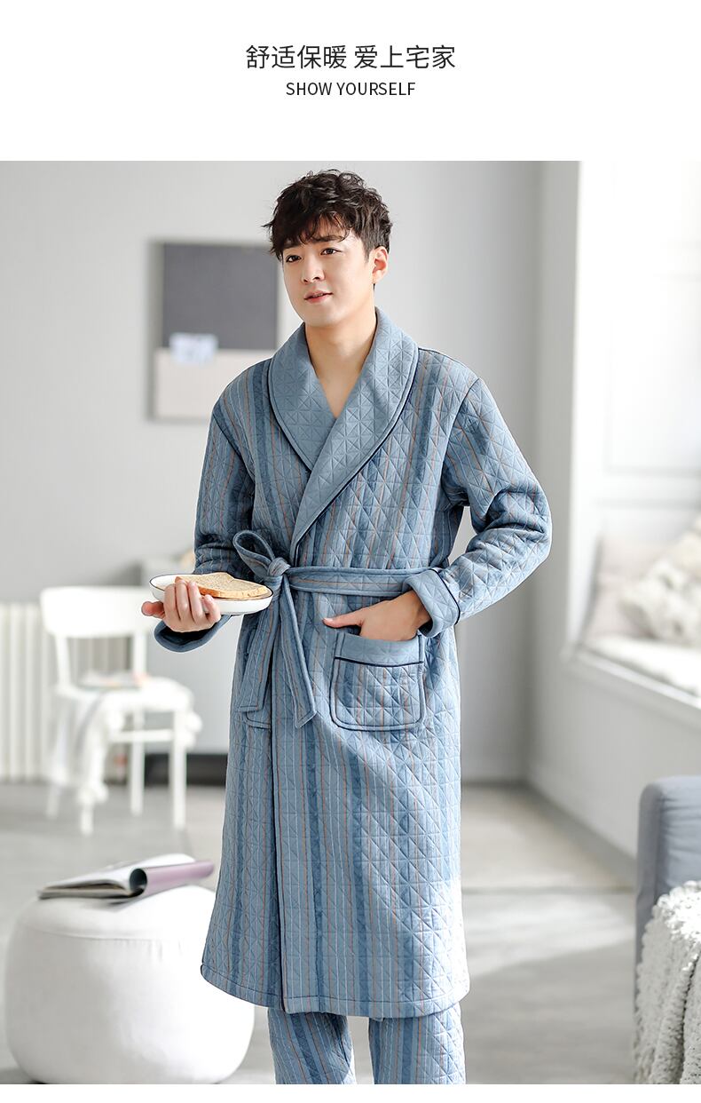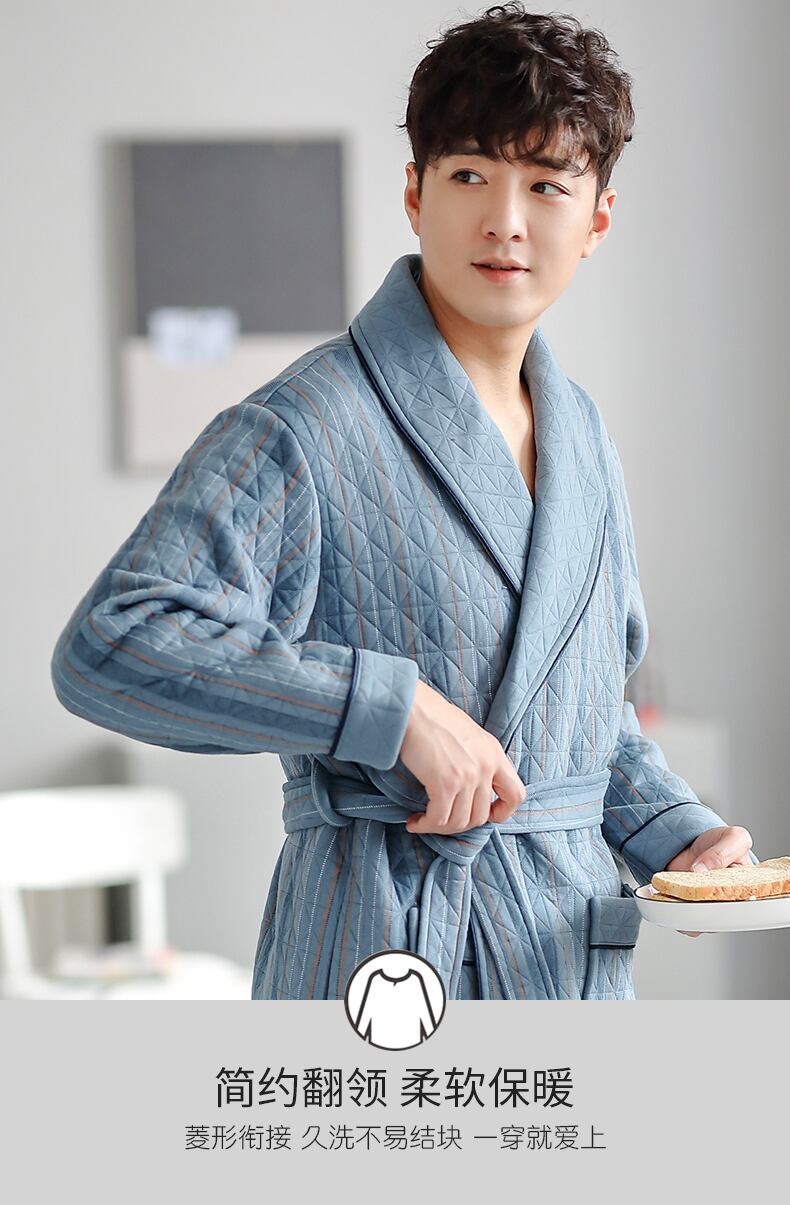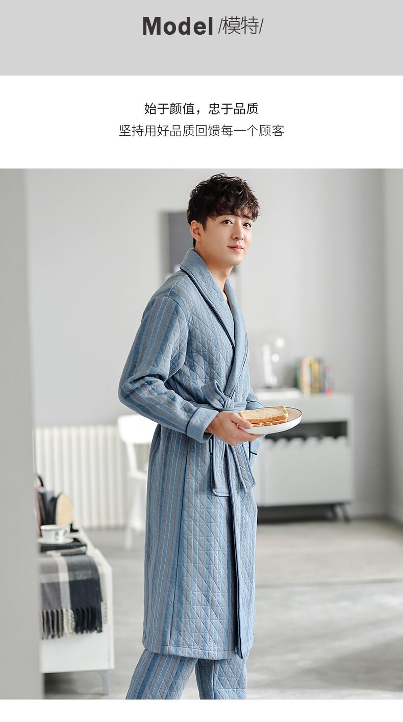 ナイトガウンメンズパジャマ春と秋厚手の純綿秋と冬冬の薄いキルティングバスローブロングオールインワンスーツ jial84374266655