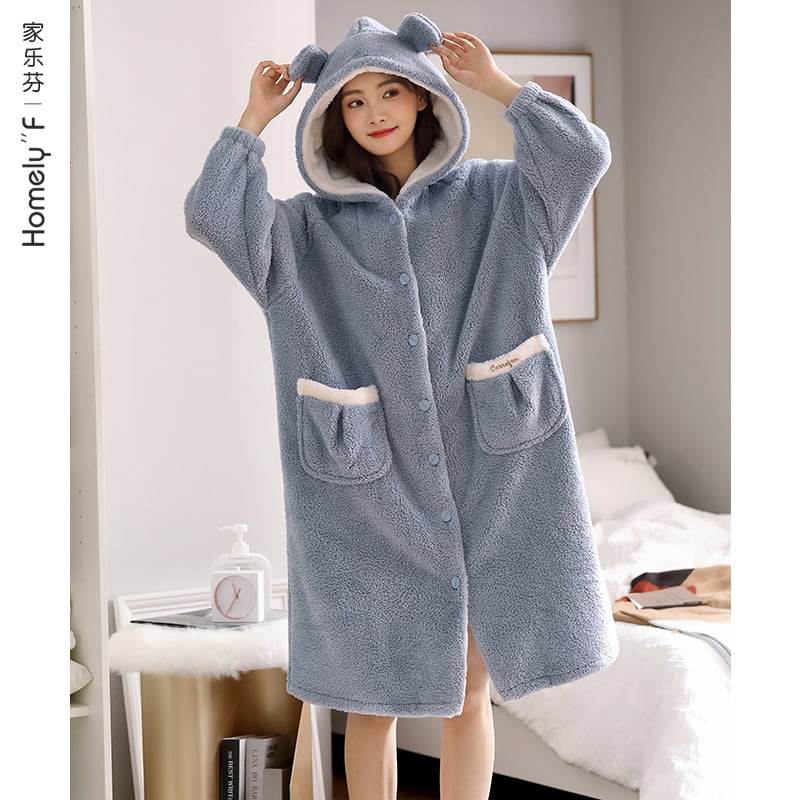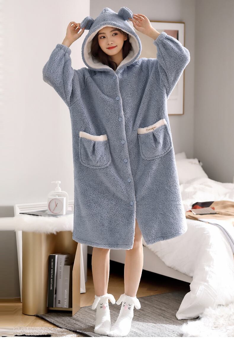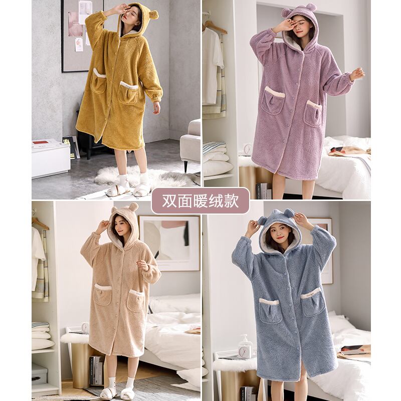 ナイトガウンレディースパジャマバスローブ秋と冬モデル冬の長いバージョンのフランネルの肥厚とベルベットコーラルベルベットホームサービス冬 jial28886773852