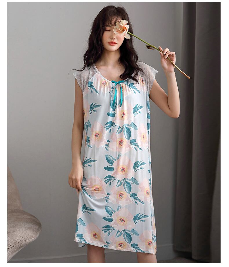 夏のネグリジェレディースワンピーススリーピングスカート夏の薄片モーダルコットンシルク中年マザールーズXL jial39155404534